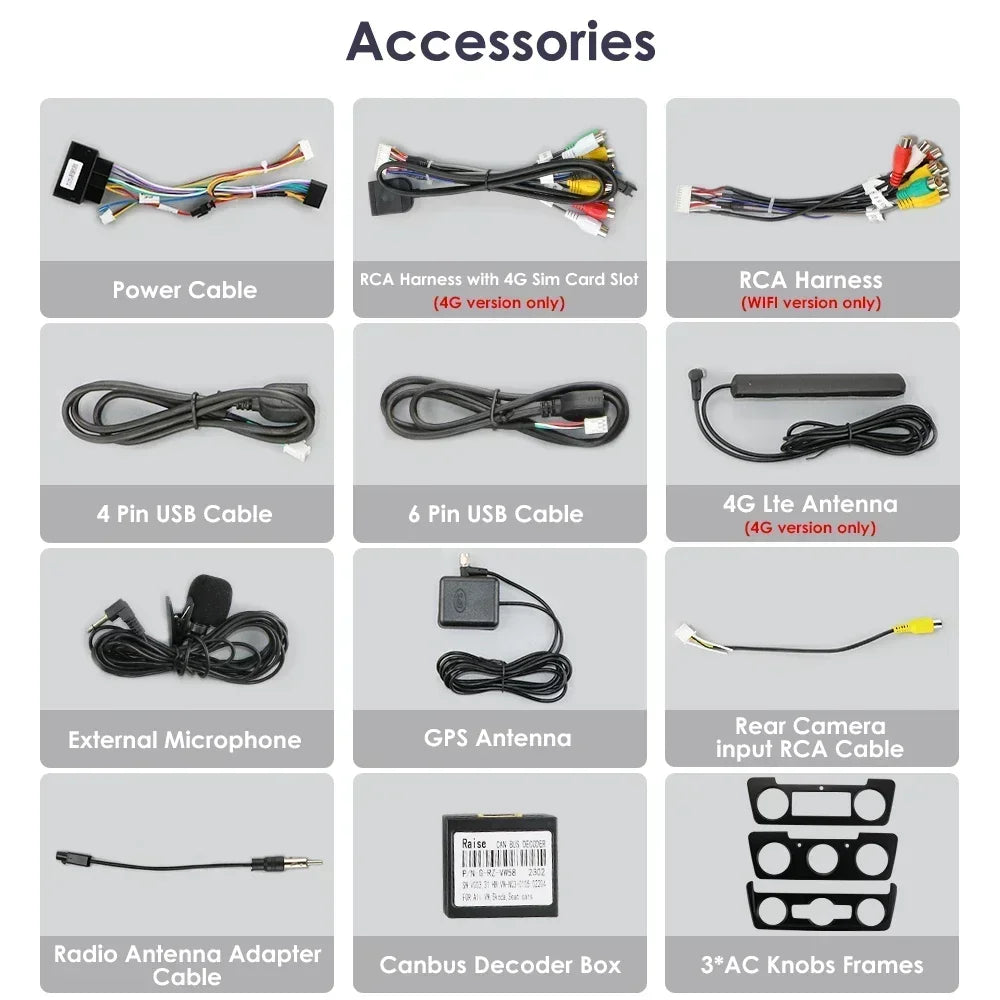 Rete 4G integrata: inserire la scheda SIM prima di accendere il dispositivo. Includere lo slot per scheda 4G e l'antenna 4G! Festa audiovisiva Schermo QLED 1280*720 / Schermo IPS 1024*600: ottima qualità dell'immagine, colori realistici, adatto a più scene, per soddisfare le vostre esigenze Funzione di cambio colore dei pulsanti: colore della luce originale, rosso, giallo, bianco, verde, blu, ciano, viola. Sistema vocale AI per auto Rilassati alla guida (da acquistare separatamente) Display meteo (è possibile contattarci per il codice attivo gratuito per attivarlo) Funzione finestra desktop multipla (ad esempio: GPS, OBDII, DVR, TPMS ecc.) Navigazione, display meteo, schermo diviso, telefono Bluetooth, funzioni radio, un tasto per accedere alla pagina secondaria, applicazione personalizzabile aggiungi, elimina, sposta. Supporto Torque Pro (OBD2 e auto): è possibile collegare uno strumento scanner OBD2 Bluetooth PJ-908 per utilizzare questa funzione. Nota: questo strumento scanner OBD2 Bluetooth PJ-908 non è incluso, puoi contattarci per acquistarlo insieme.