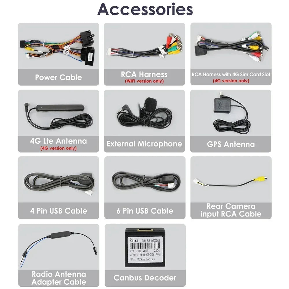 DAB+ Box (da ordinare separatamente): questa radio è dotata di un'APP per il lettore DAB, basta collegarla a un DAB+BOX tramite la porta USB per utilizzare la funzione DAB+, supporta l'ingresso di programmi radio digitali e il funzionamento touch. È possibile utilizzare il touch screen dell'unità per cercare e cambiare programma e questa unità può alimentare il DAB+ BOX collegato.