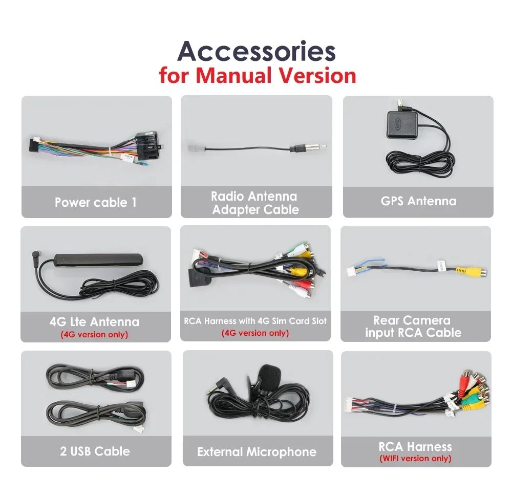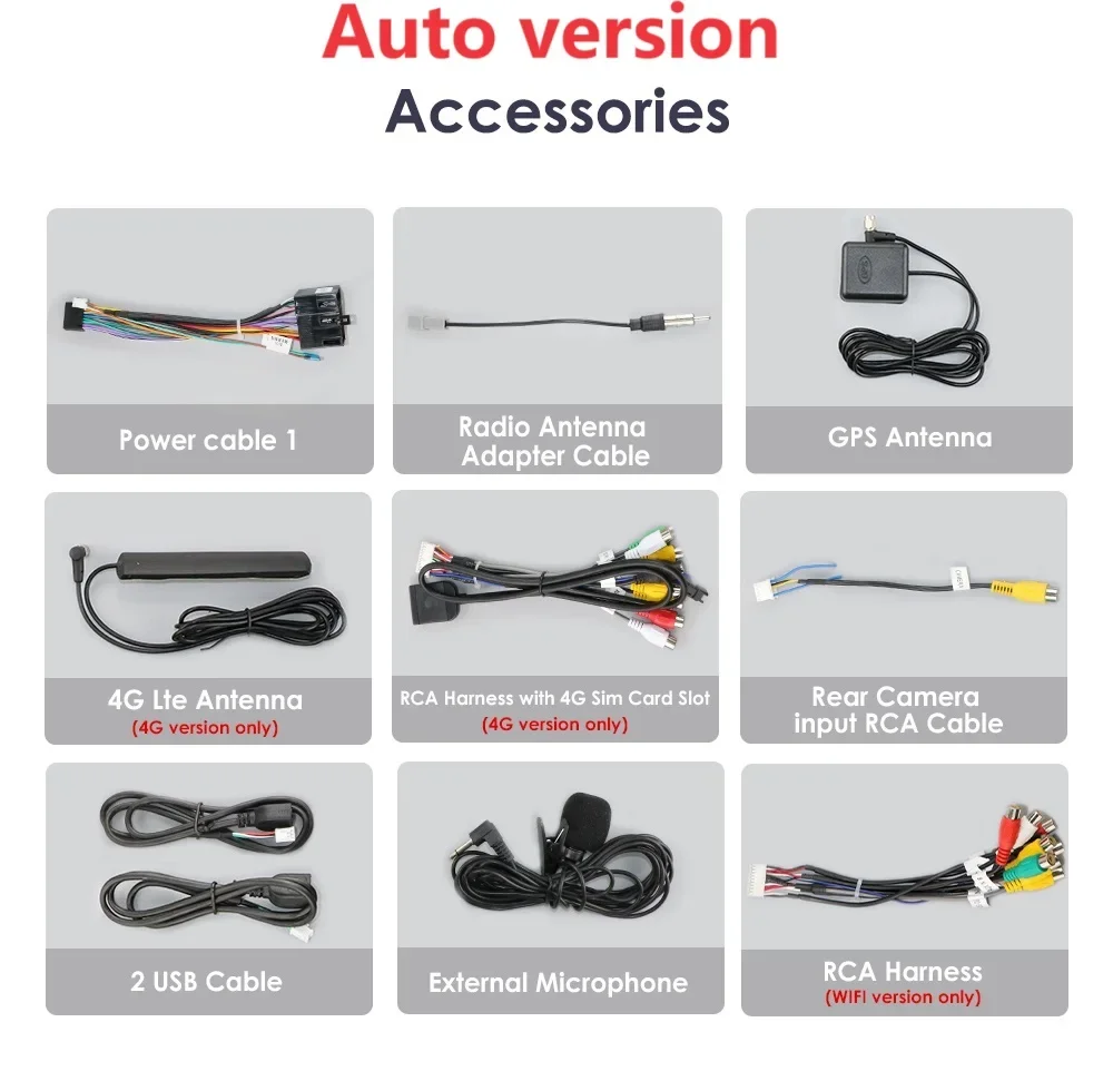 Accessori standard: spediti insieme all'unità principale (ma si prega di prestare attenzione alle parole rosse dell'accessorio, se è possibile ottenerlo o meno, a seconda dell'opzione dell'articolo che si sceglie di acquistare) (immagine mostrata dell'articolo versione Auto)