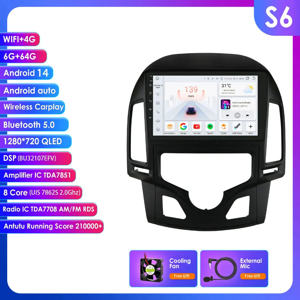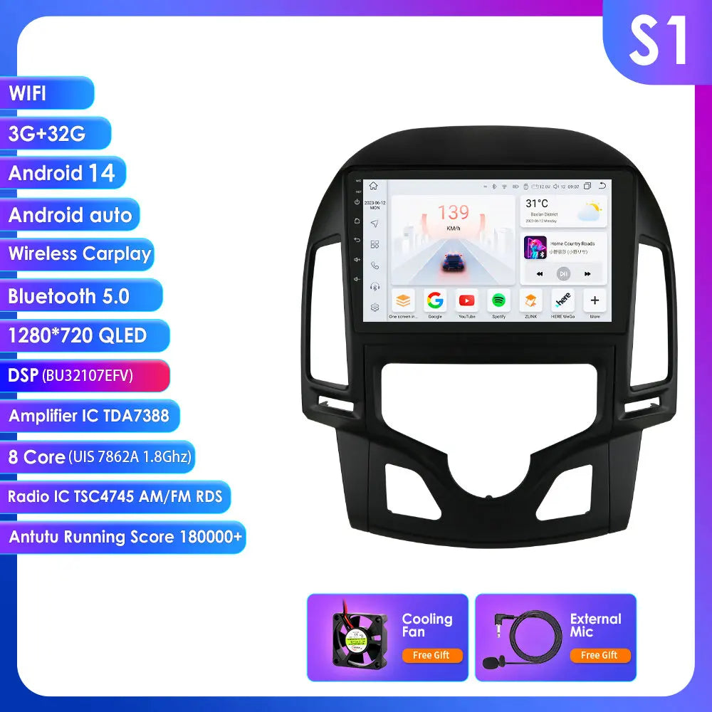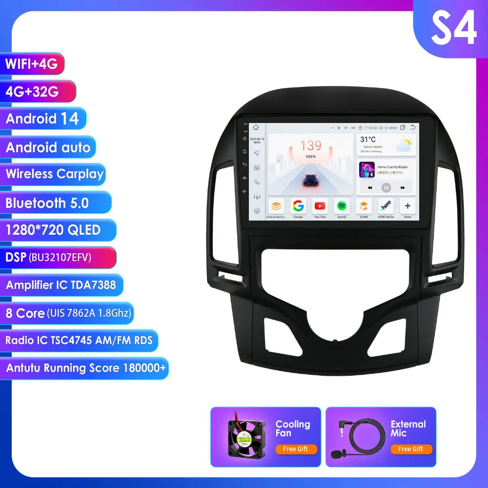 Hyundai I30 2006-2011 9" / 10,33" Android 14 Carplay Android auto wireless wifi bt gps 4g AUTMQS31