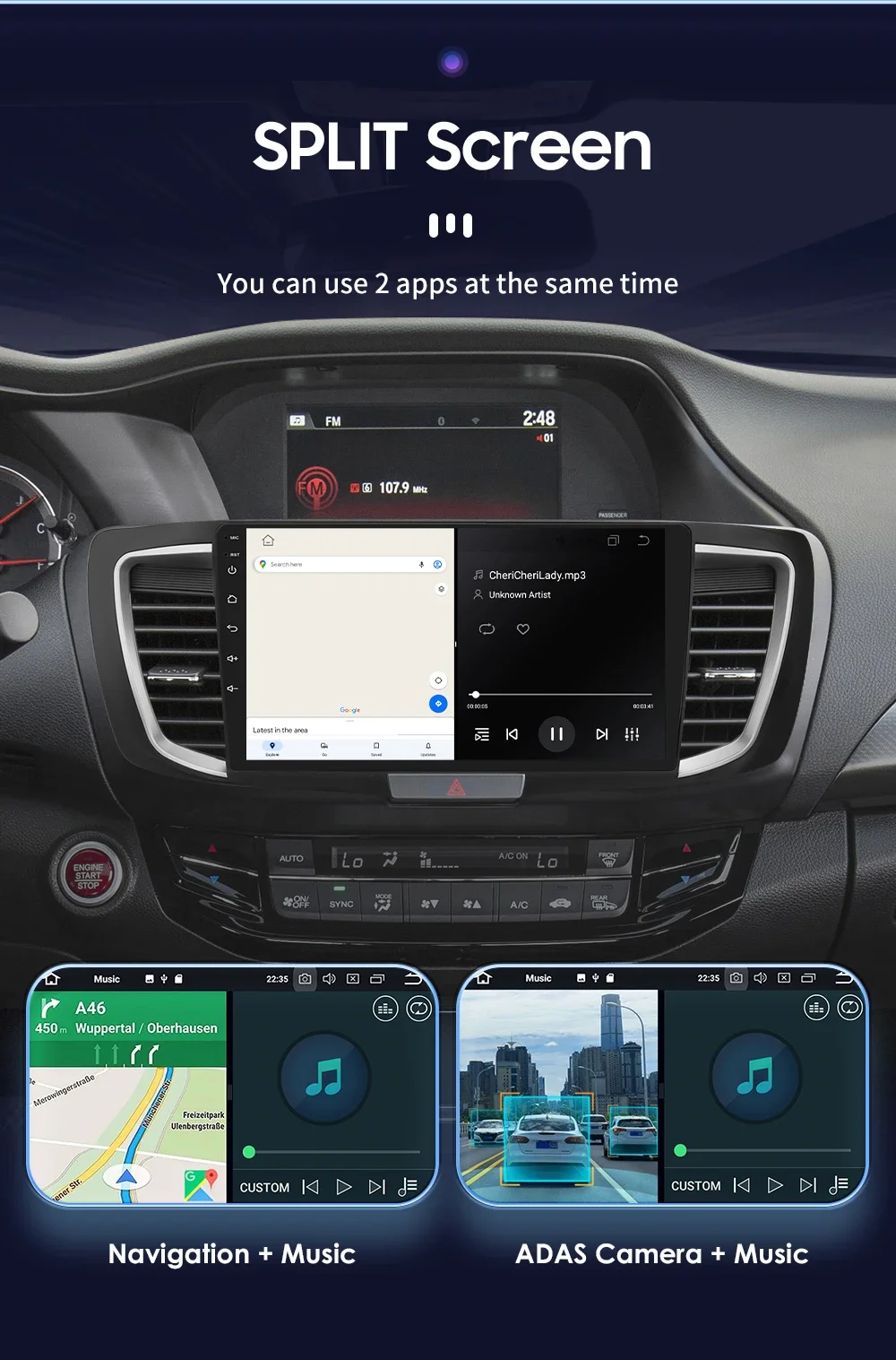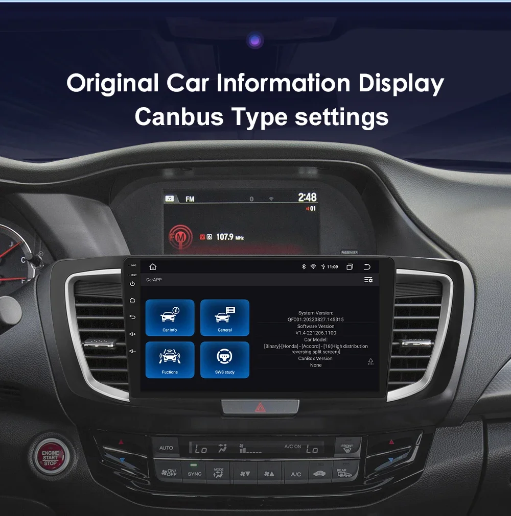 Honda ACCORD 9 2.0L 2.4L 2012 -2018 9" Android 14 Carplay Android auto wireless wifi bt gps 4g AUTMA22DH