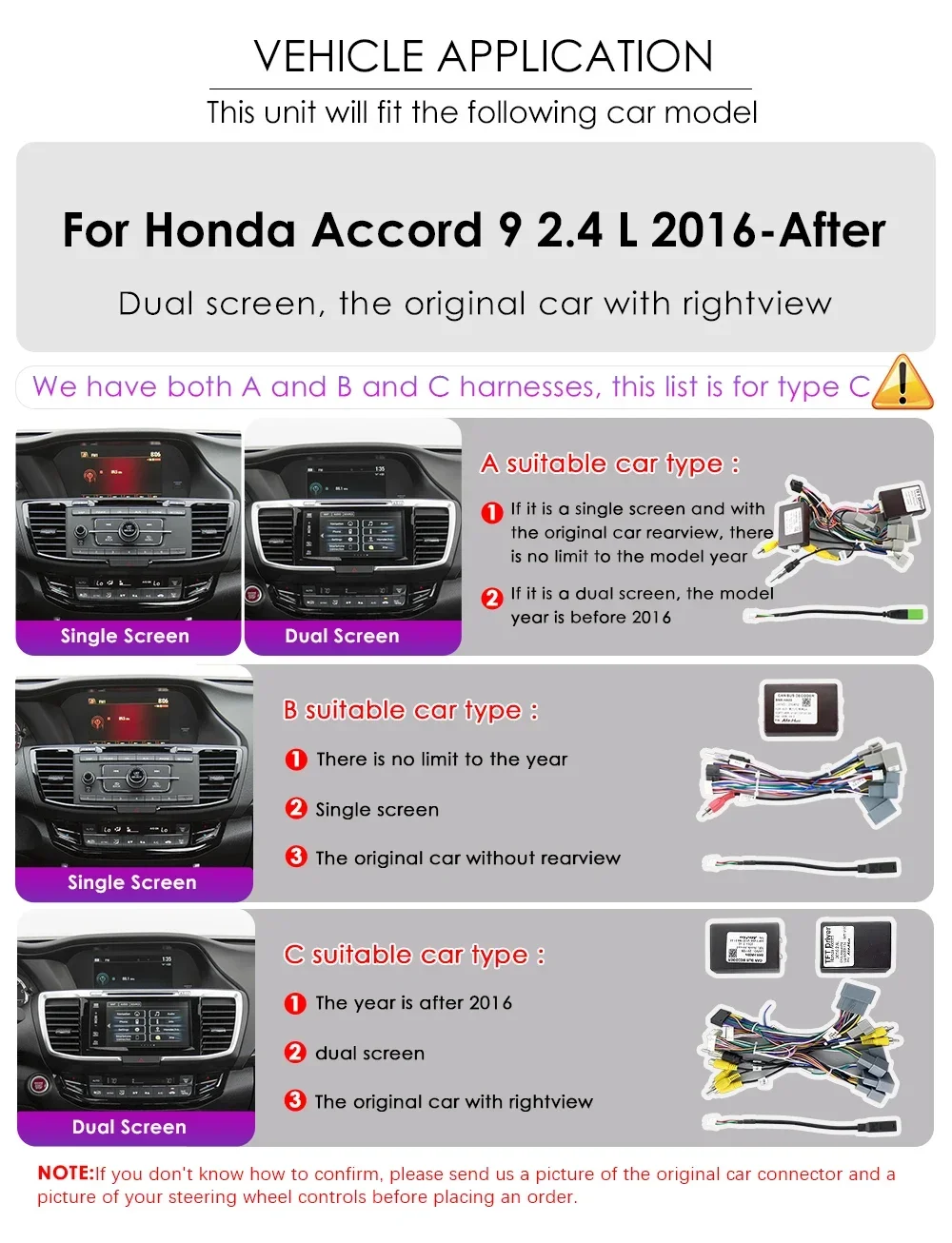 per Honda Accord 9 2.4L 2012-2018 (Tipo B o C, a seconda che sia con o senza telecamera di fabbrica)