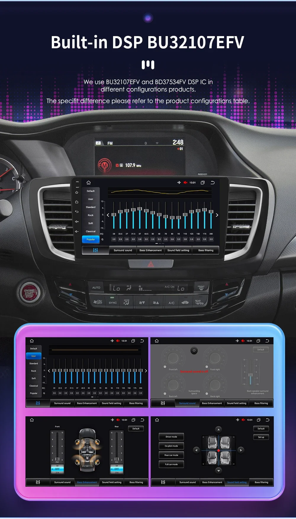DSP integrato BU32107EFV: utilizziamo BU32107EFV e BD37534FV DSP IC in diverse configurazioni di prodotti. Per le differenze specifiche, fare riferimento alla tabella delle configurazioni del prodotto.