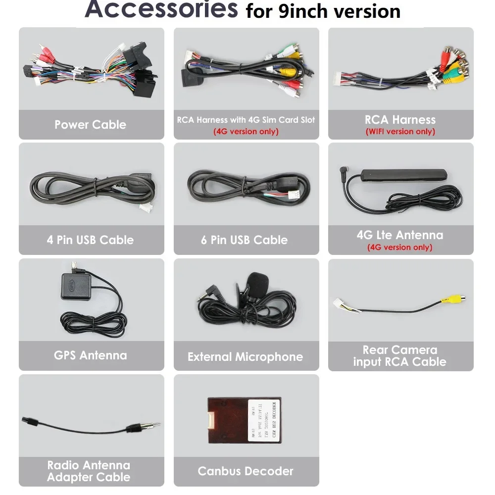 Standard Accessories: which ship with the head unit together(ma fai attenzione alle parole rosse degli accessori, se puoi ottenerli o meno, dipende dall'opzione dell'articolo che scegli di acquistare)