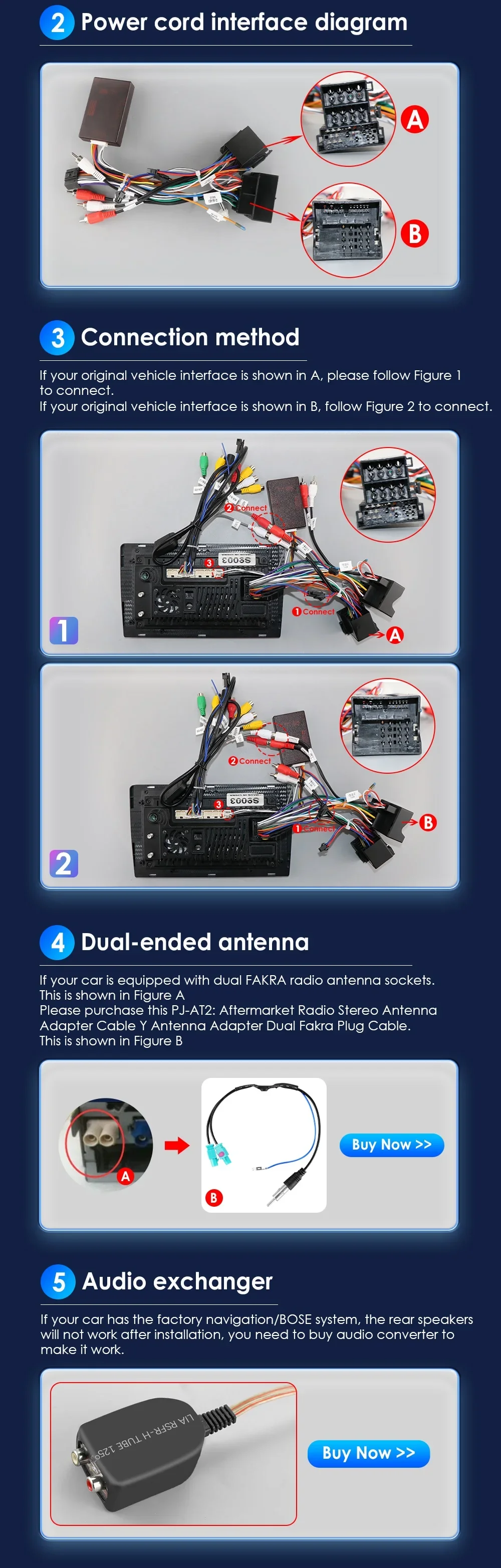 Se l’interfaccia originale del tuo veicolo è come mostrato in A, segui la figura 1 per collegare.