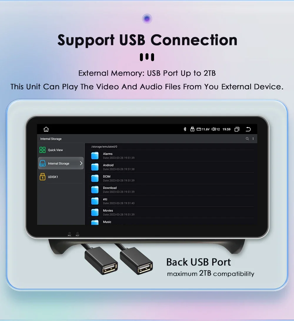 External Memory: USB port up to 2TB,this unit can play the video and audio files from your external device.