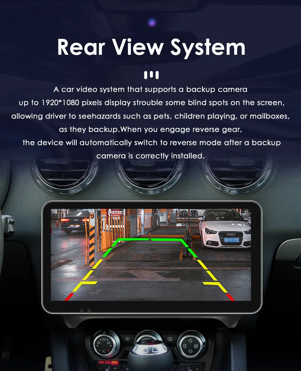 Rear View System(Rear View Camera needs to order separately): A car video system that supports a backup camera displays troublesome blind spots on a monitor , allowing a driver to see hazard such as pets ,children playing ,or mailboxes ,as they backup.