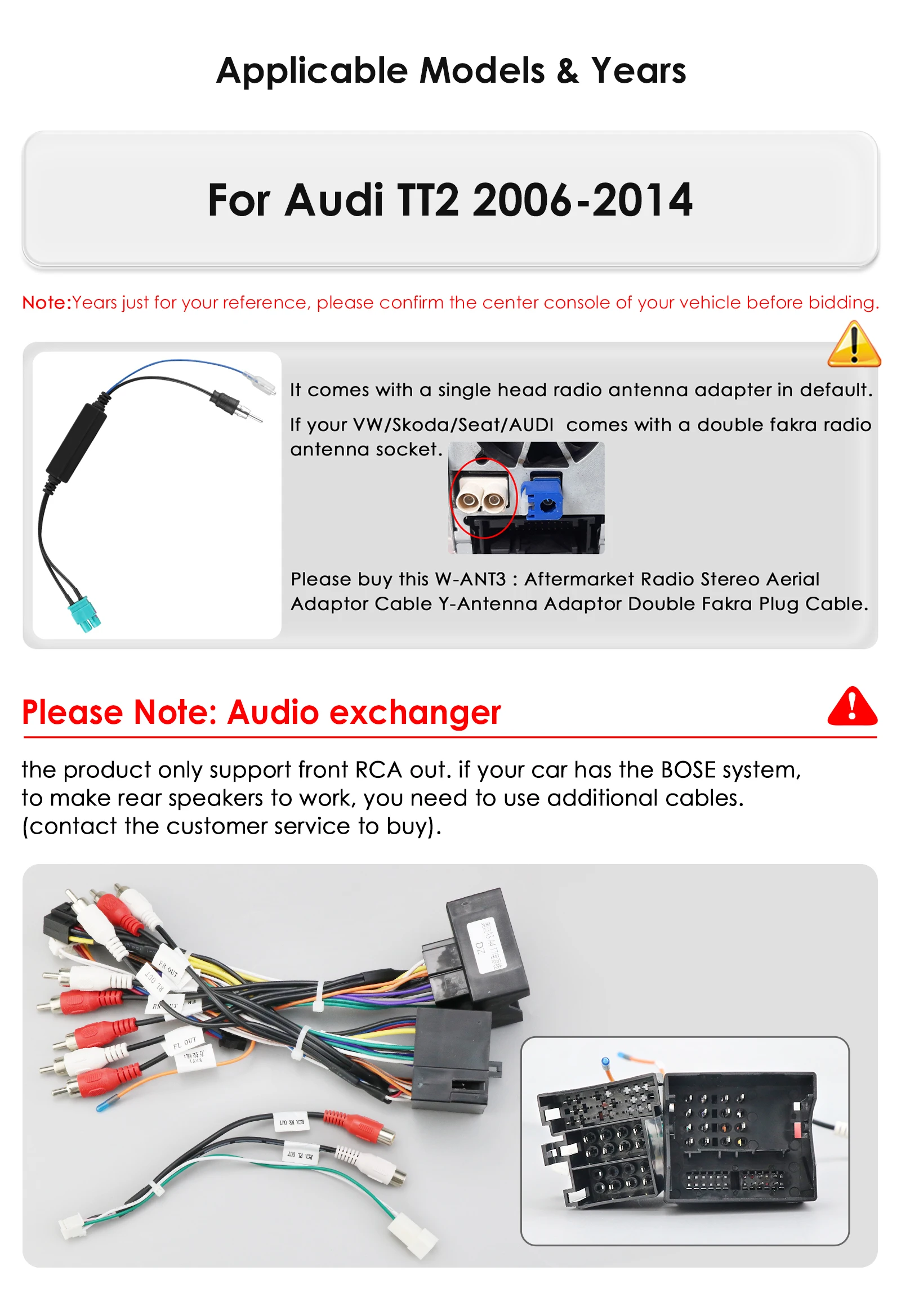 ➡️ W-ANT3: Adattatore aftermarket per antenna radio stereo, cavo adattatore Y con doppio connettore Fakra.