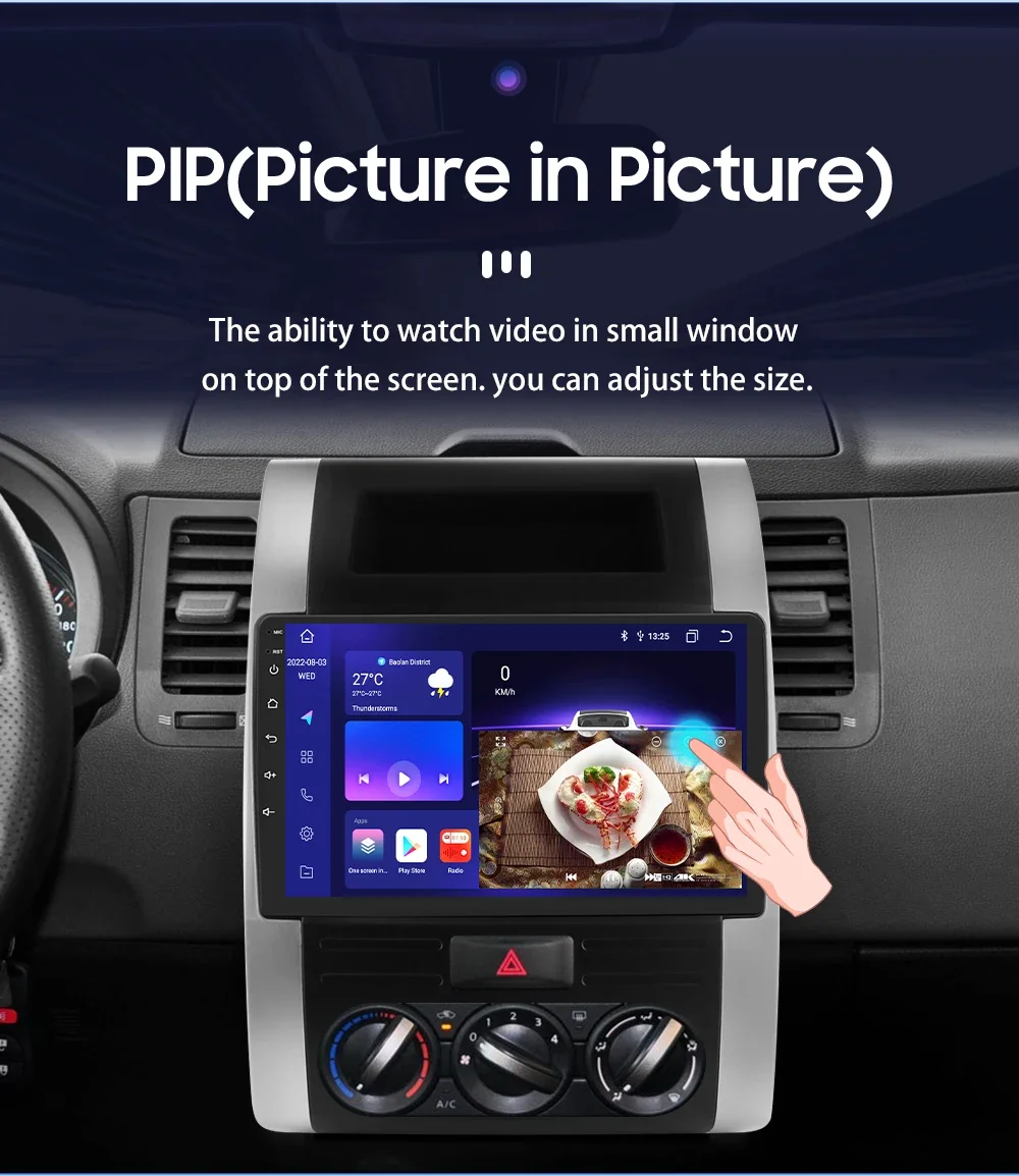 PIP (Picture in Picture): la possibilità di guardare un video in una piccola finestra nella parte superiore dello schermo, l'auto ne regola le dimensioni.