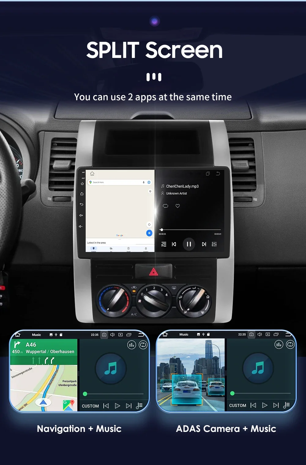 Schermo diviso: puoi usare 2 app contemporaneamente (come: Navigazione + Musica, Telecamera ADAS + Musica, ecc.)
