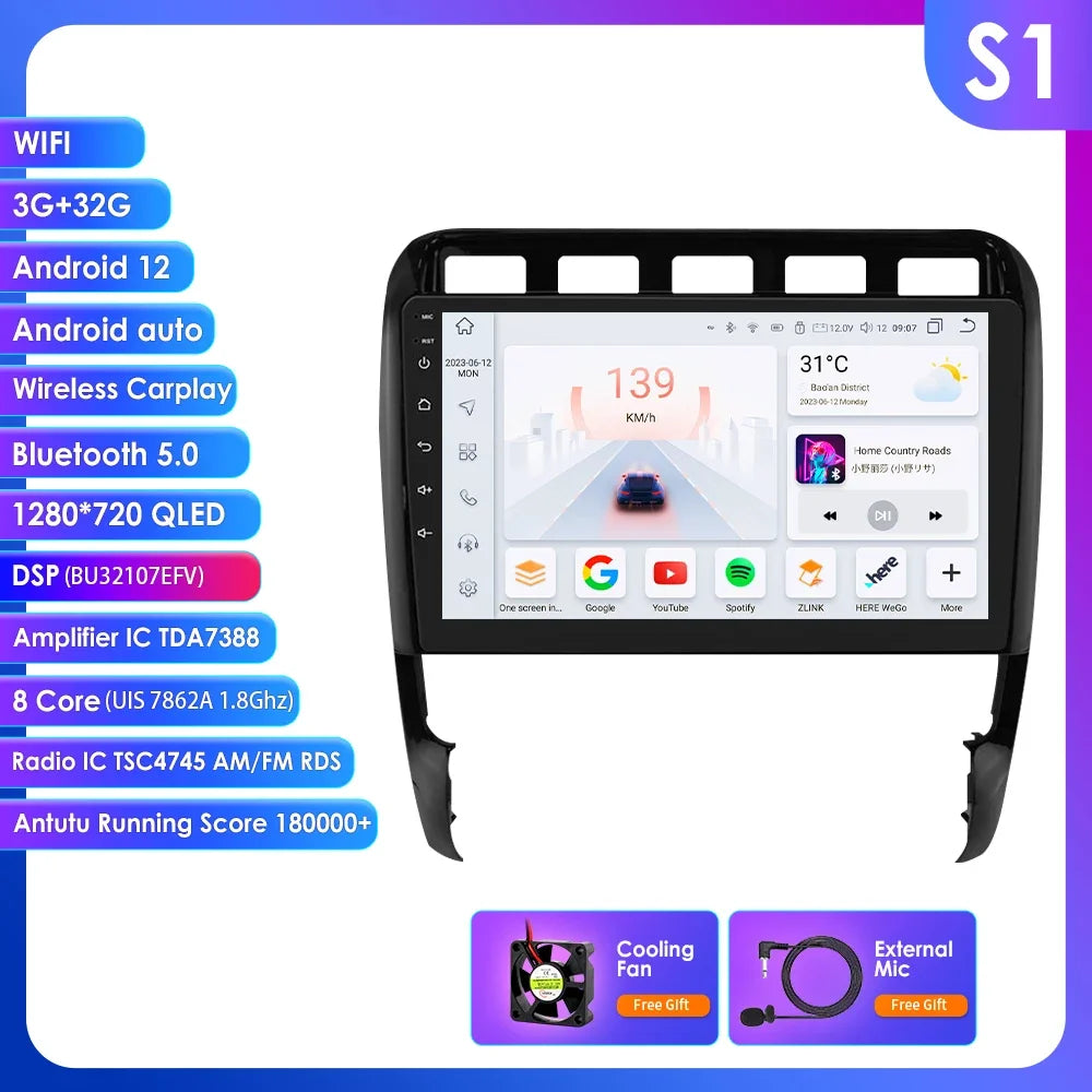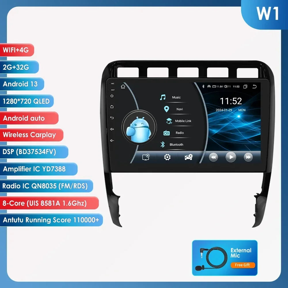 Porsche Cayenne 2002 - 2010 9" Android 14 Carplay Android auto wireless wifi bt gps 4g AUTM29SA
