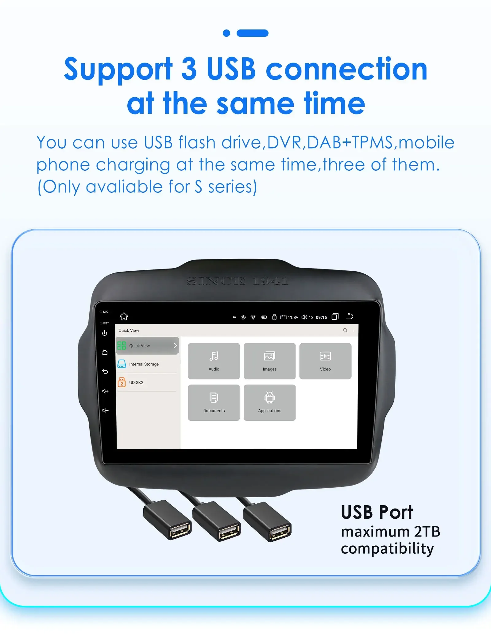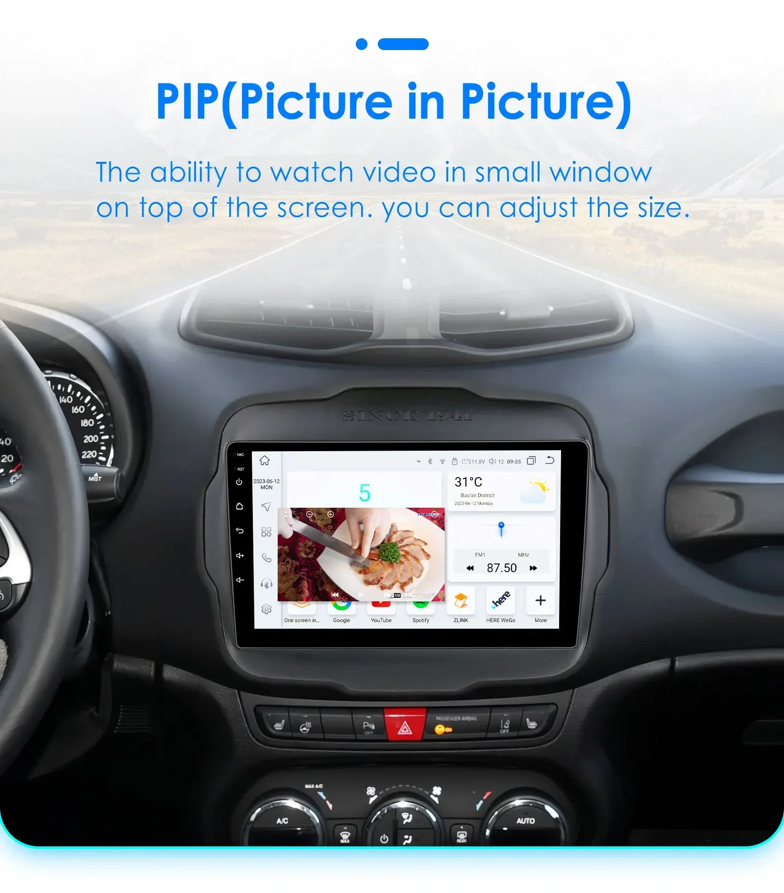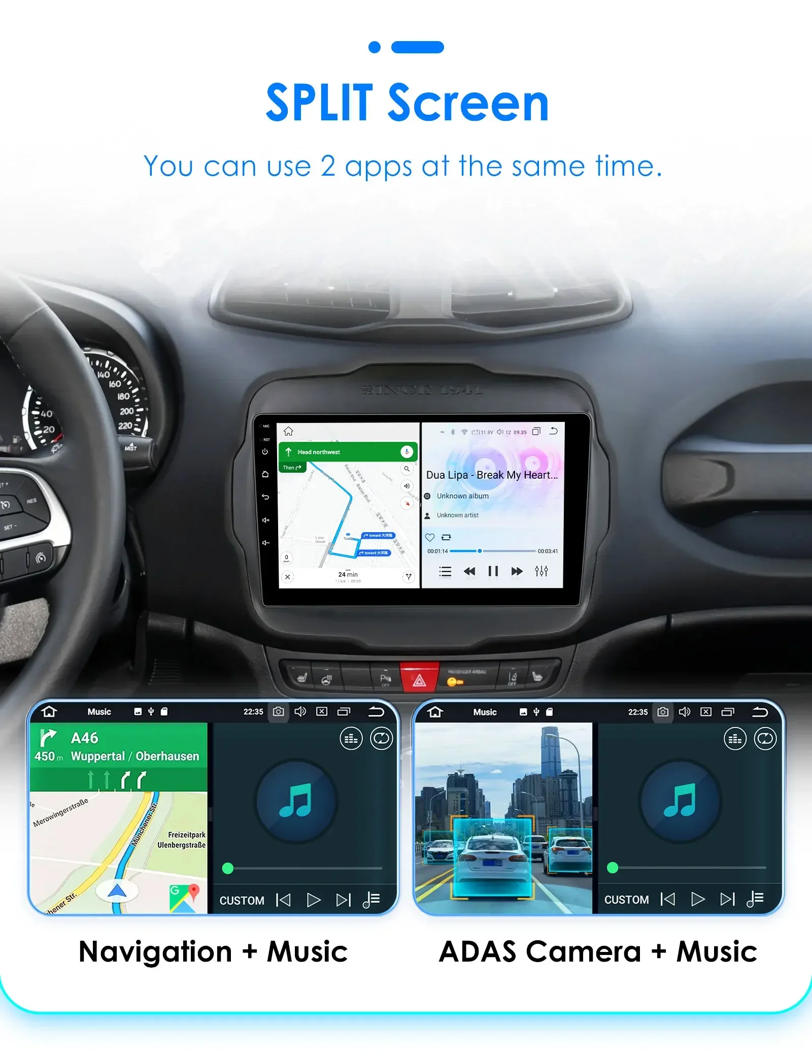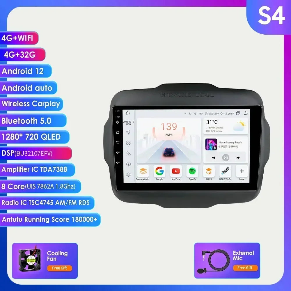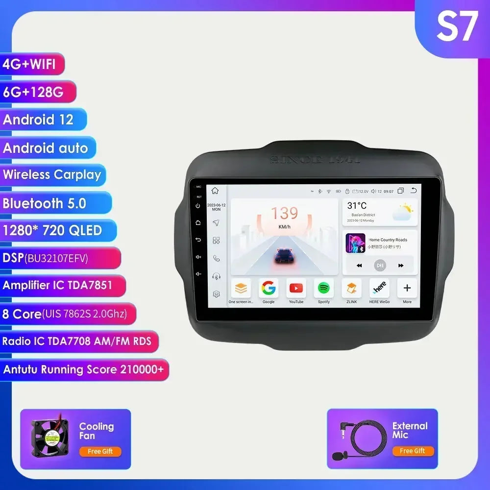 Jeep Renegade 2016-2020 9" Android 14 Carplay Android auto wireless wifi bt gps 4g AUTM7T02