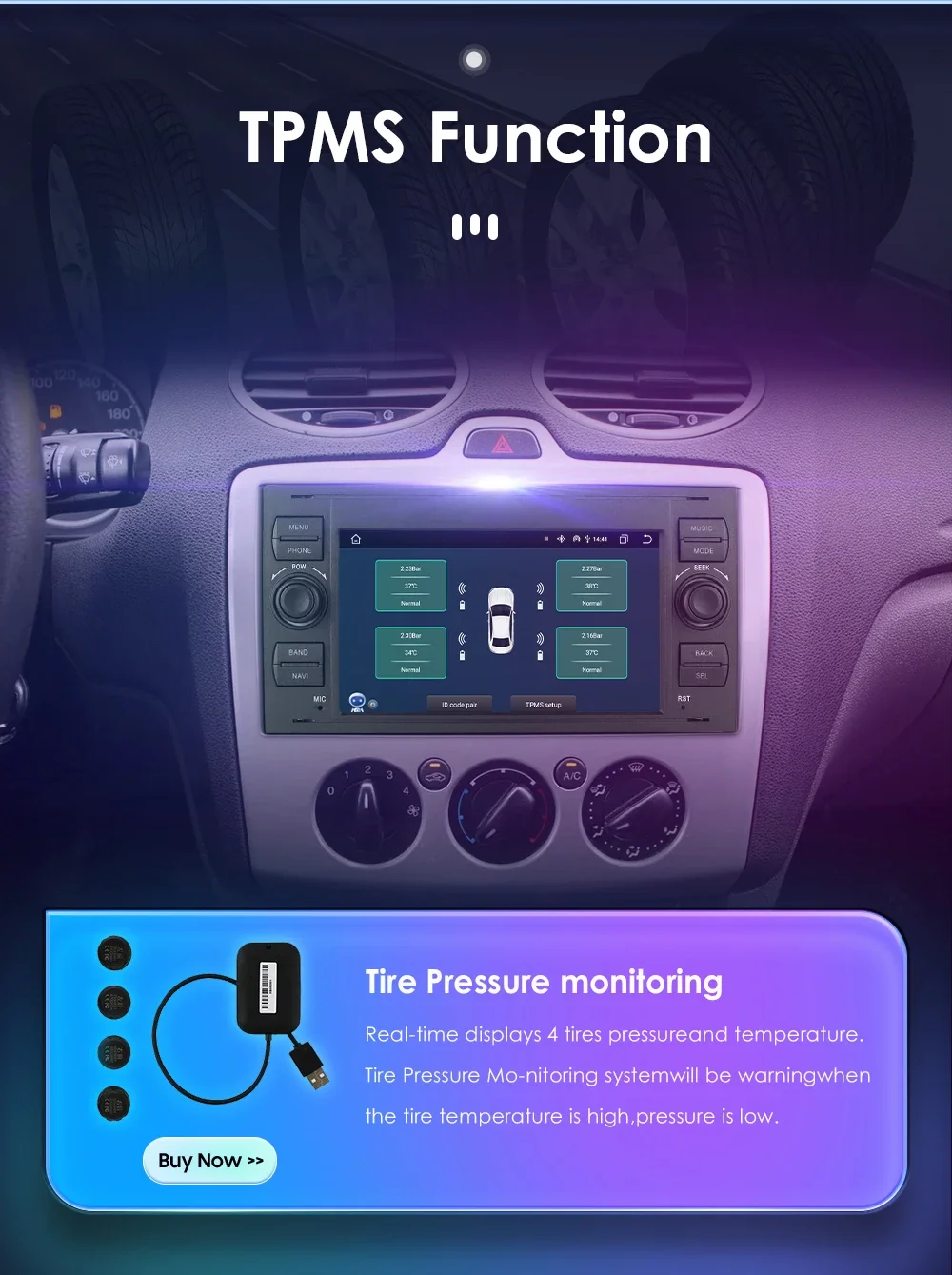 DAB+ Box ( Needs to order separately) : This radio has been installed DAB player APP, just connect with a DAB+BOX via USB Port to use this DAB+ Function, support input digital radio Programs and touch operation.you can use unit's touch screen to search and change programs ,and this unit can supply power to the connected DAB+ BOX.TPMS Function( Needs to order separately) : Tire Pressure Monitoring: Real-time displays 4 tires pressure and temperature,Tire Pressure Monitoring system will be warning when the tire temperature is high, pressure is low.
