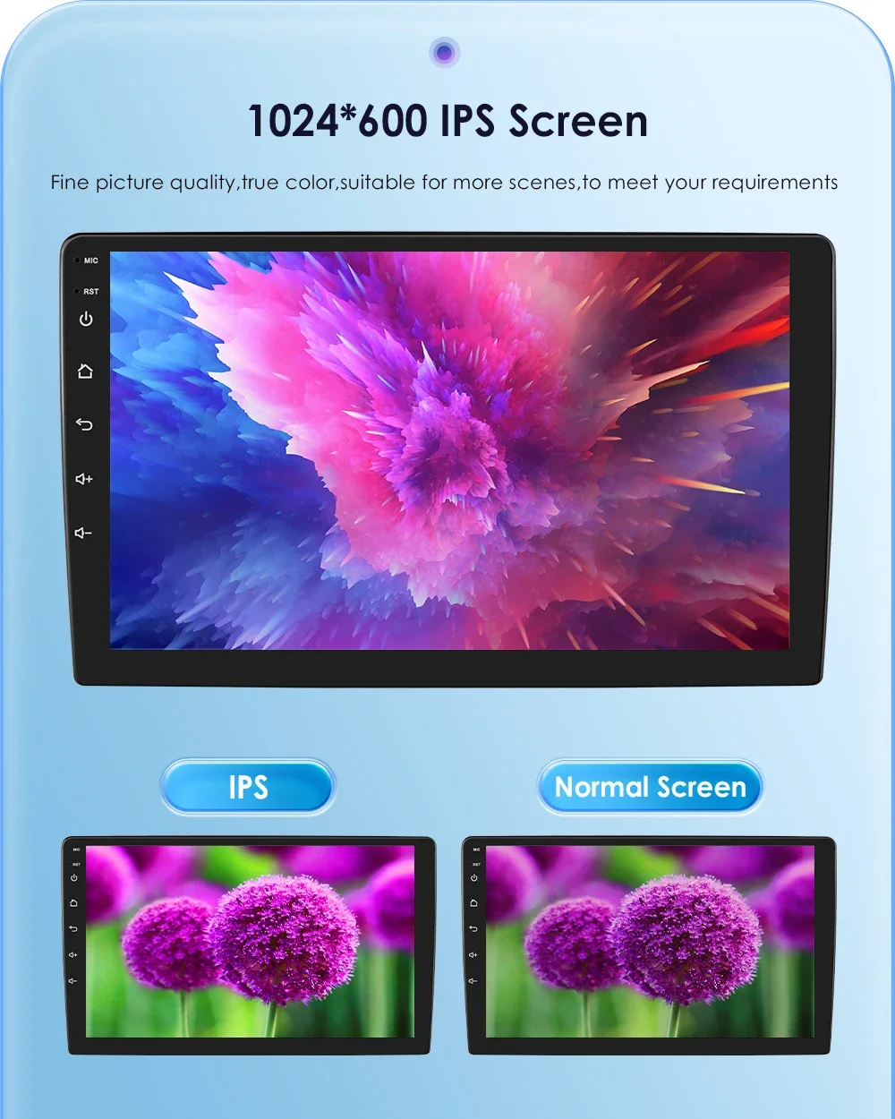 1024*600 IPS Screen : Fine picture quality, true color, suiltable for more scenes, to meet your requirements