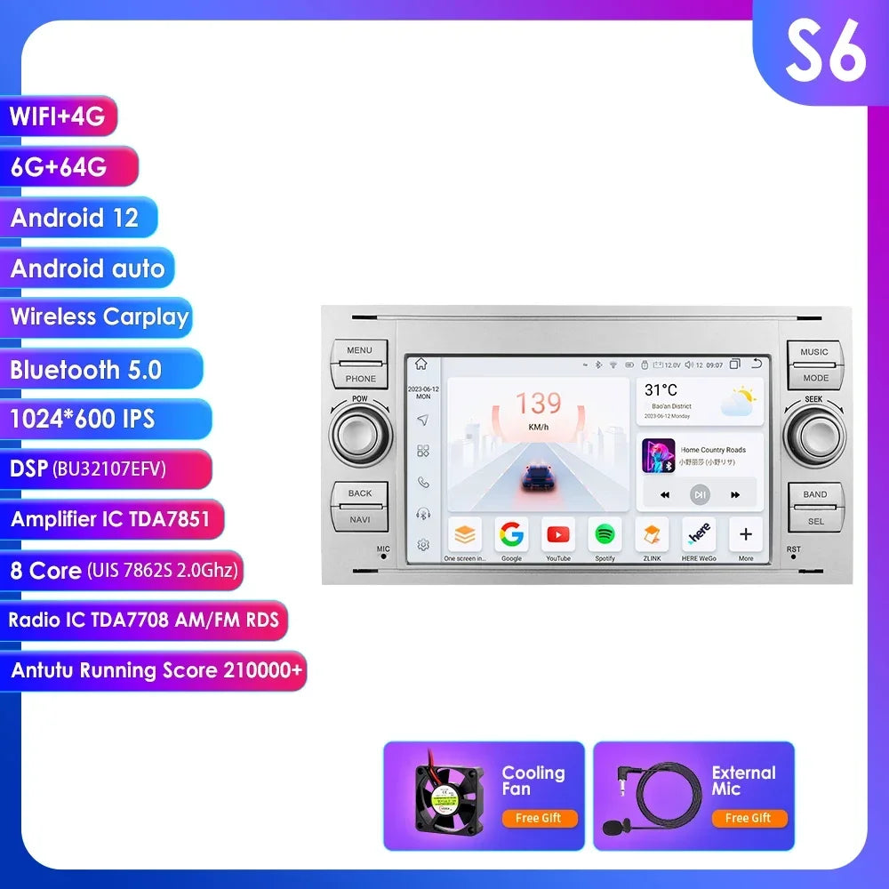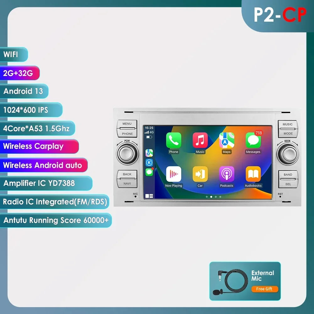 Ford Mondeo S-max Focus C-MAX Galaxy Fiesta Transit Fusion Connect Kuga 7" Android 14 AUTM58OQ Carplay Android auto wireless wifi bt gps 4g AUTM2PNO