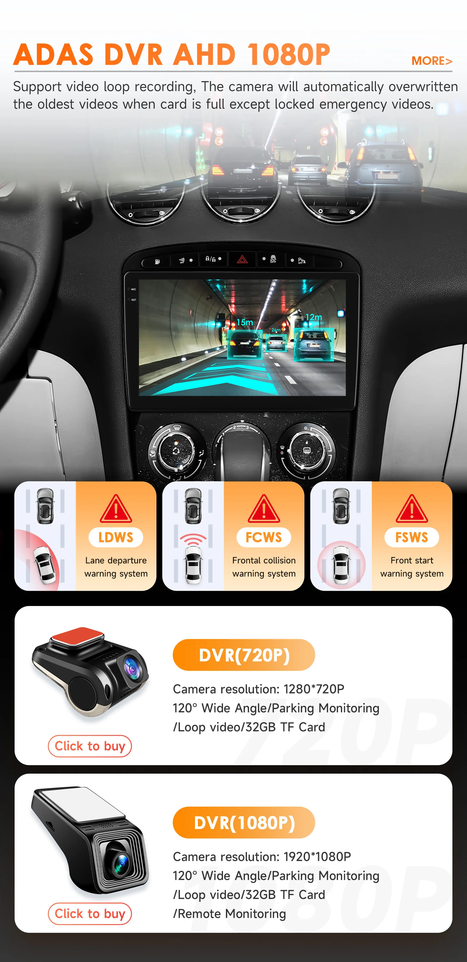 Adoption of high-efficiency sensors,the imaging effect is clear and transparent,details can be seen at a glance. ADAS DVR AHD 1080P