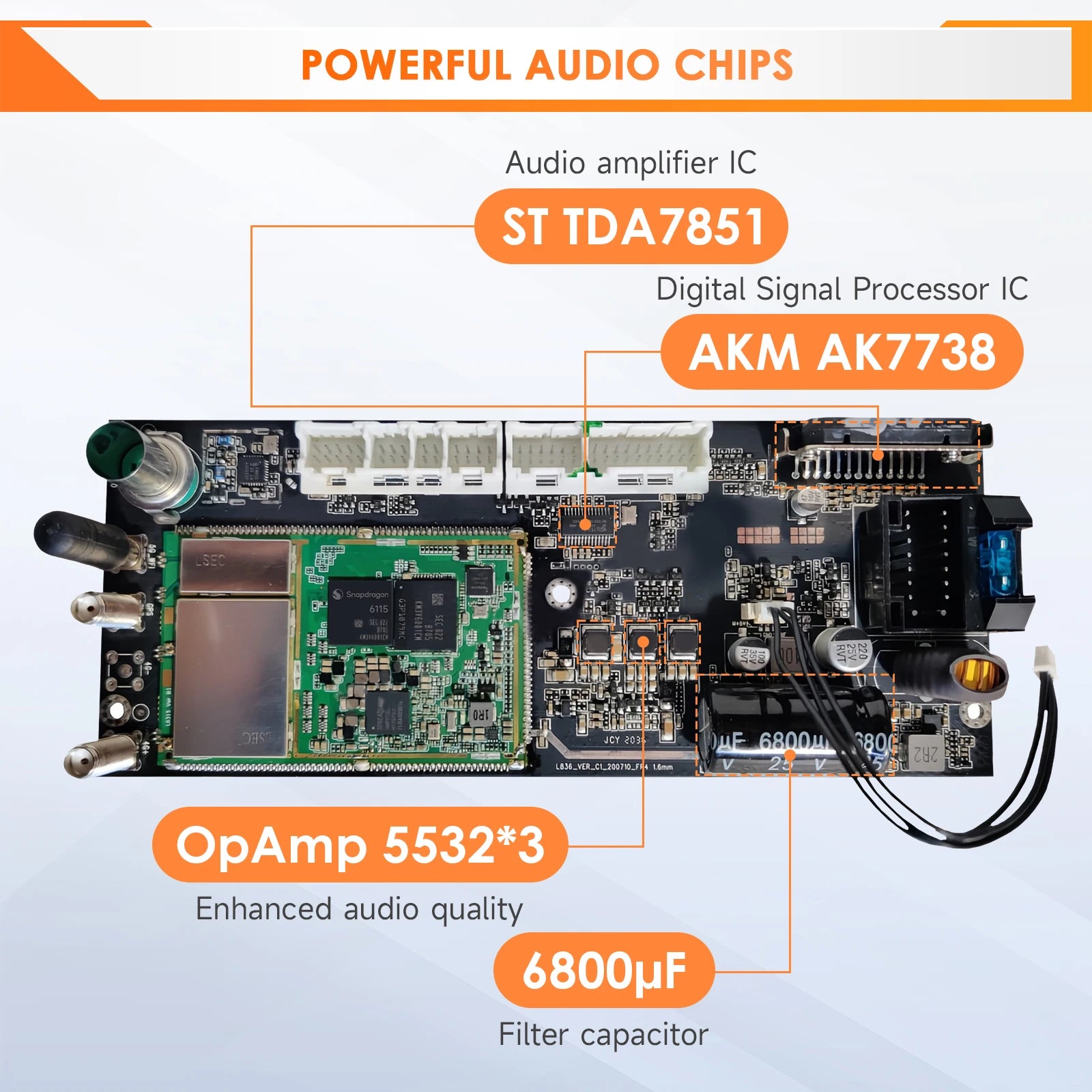 We use the TDA7851 power amplifier chip, which enables the maximum output power of our product to reach 4*50W, with the total harmonic distortion (THD) as low as 0.01% and the typical signal-to-noise ratioreaching 98dB.Our player support DSD and other lossless format decoding,All of these allow you to have an ultimate HiFi auditory experience in the car. Optical/Coaxial