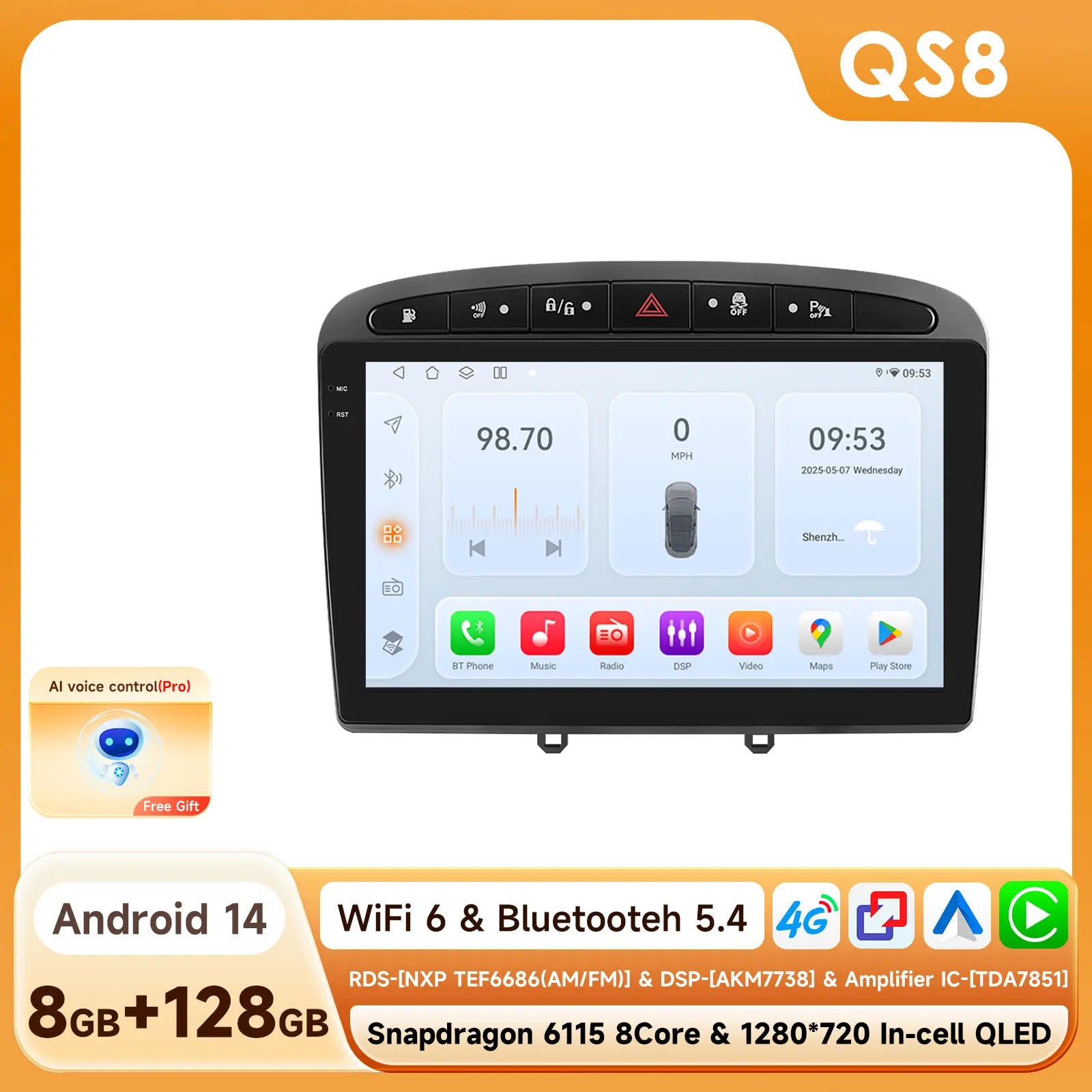 Peugeot 308 308SW Peugeot 9" Android 14 Carplay Android auto wireless wifi bt gps 4g AUTMAJNZ