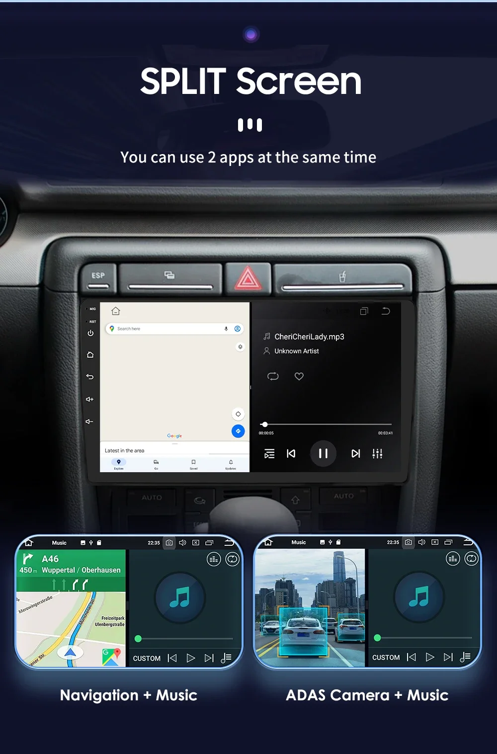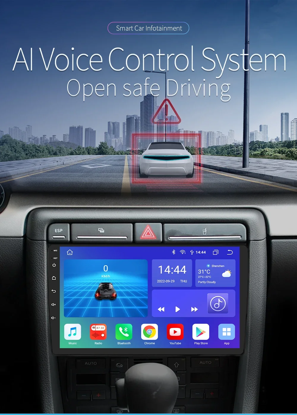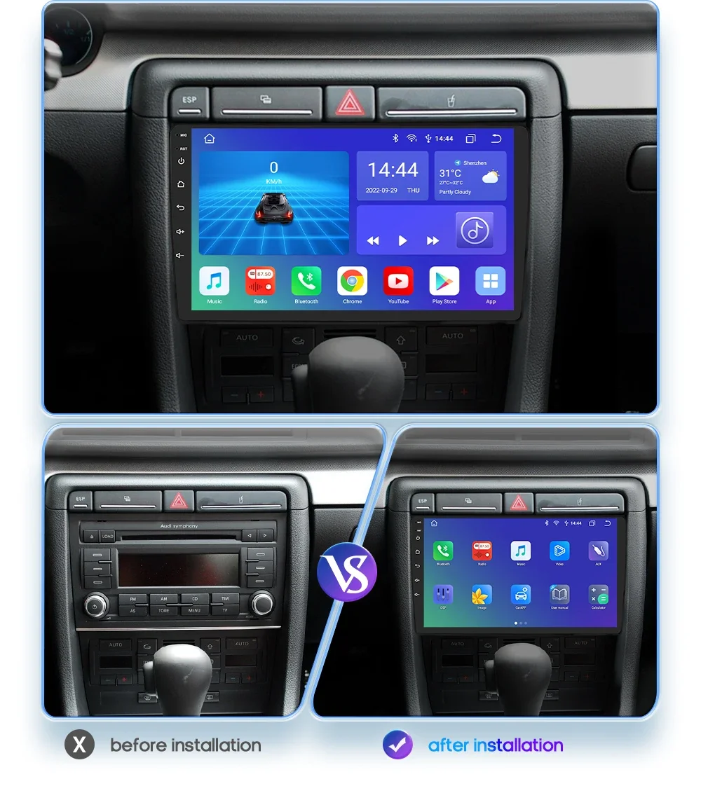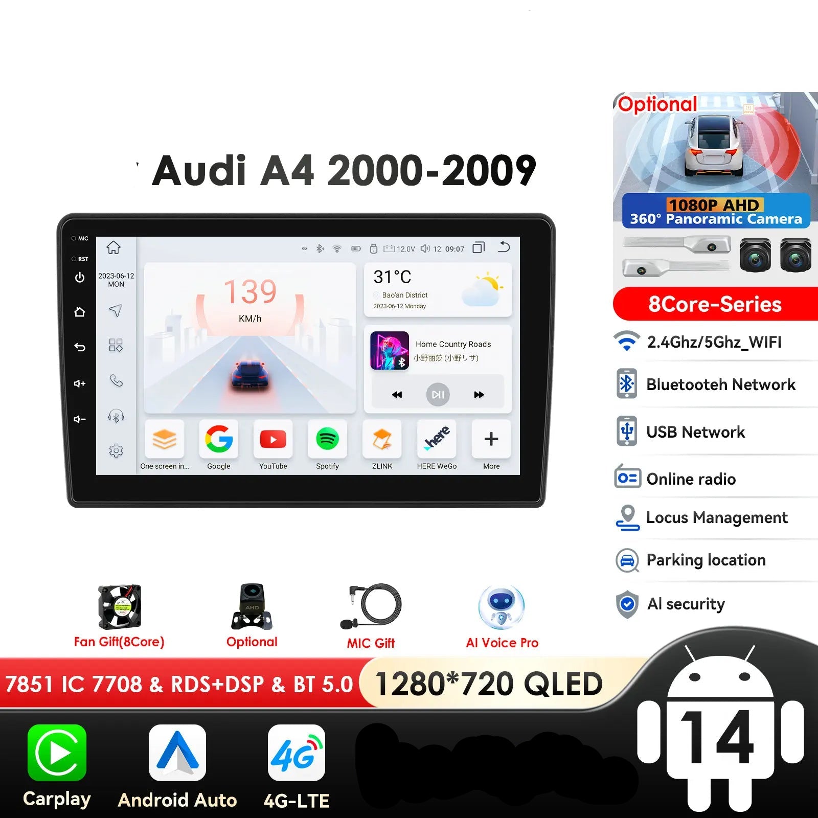 Audi A4 2000-2009 S4 B6 B7 RS4 Seat Exeo 9" Android 14 Carplay Android auto wireless wifi bt gps 4g AUTMPZ5Q