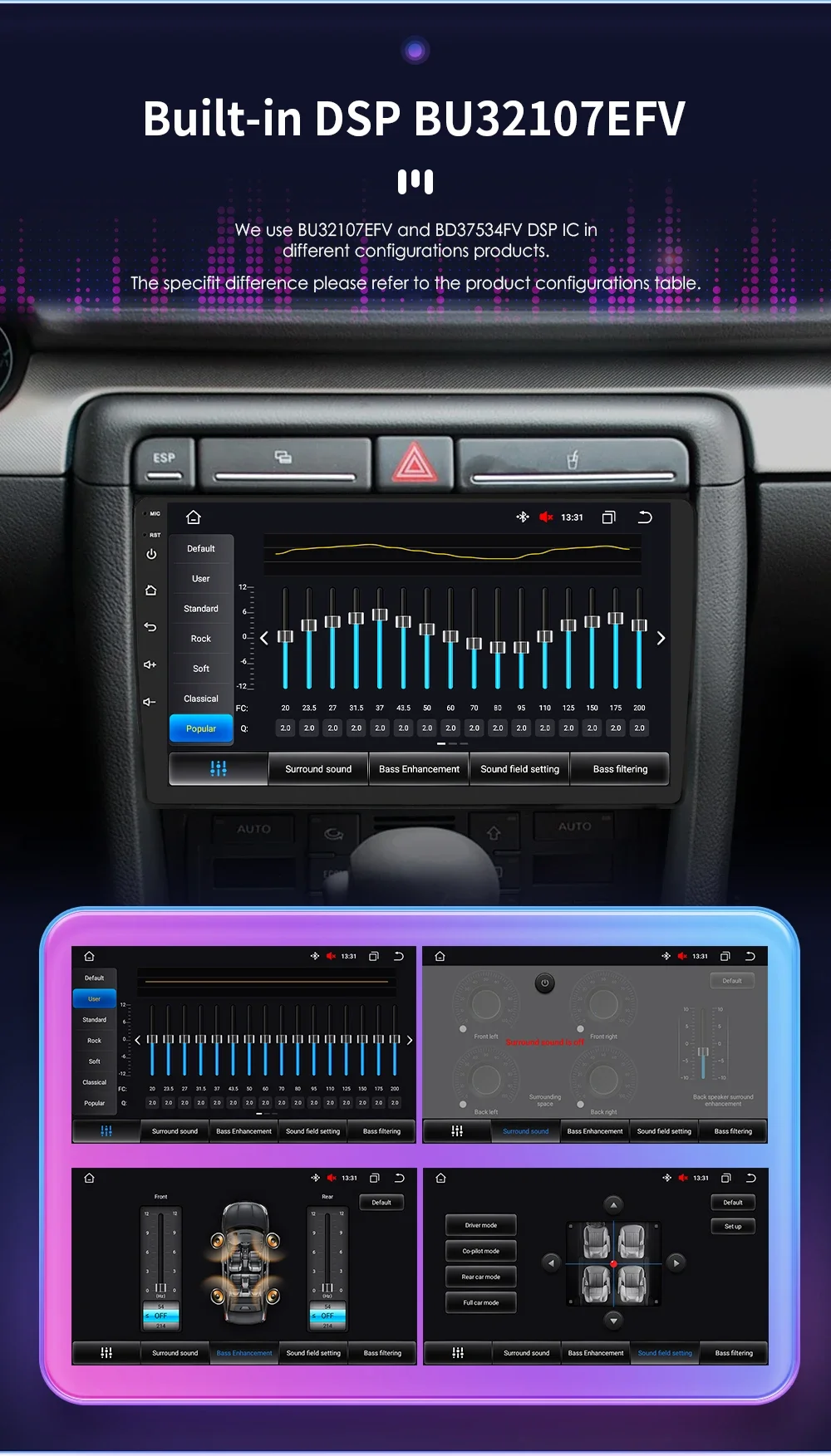 Built-in DSP BU32107EFV: We use BU32107EFV and BD37534FV DSP IC in different configurations products. The specifit difference please refer to the product configurations table.