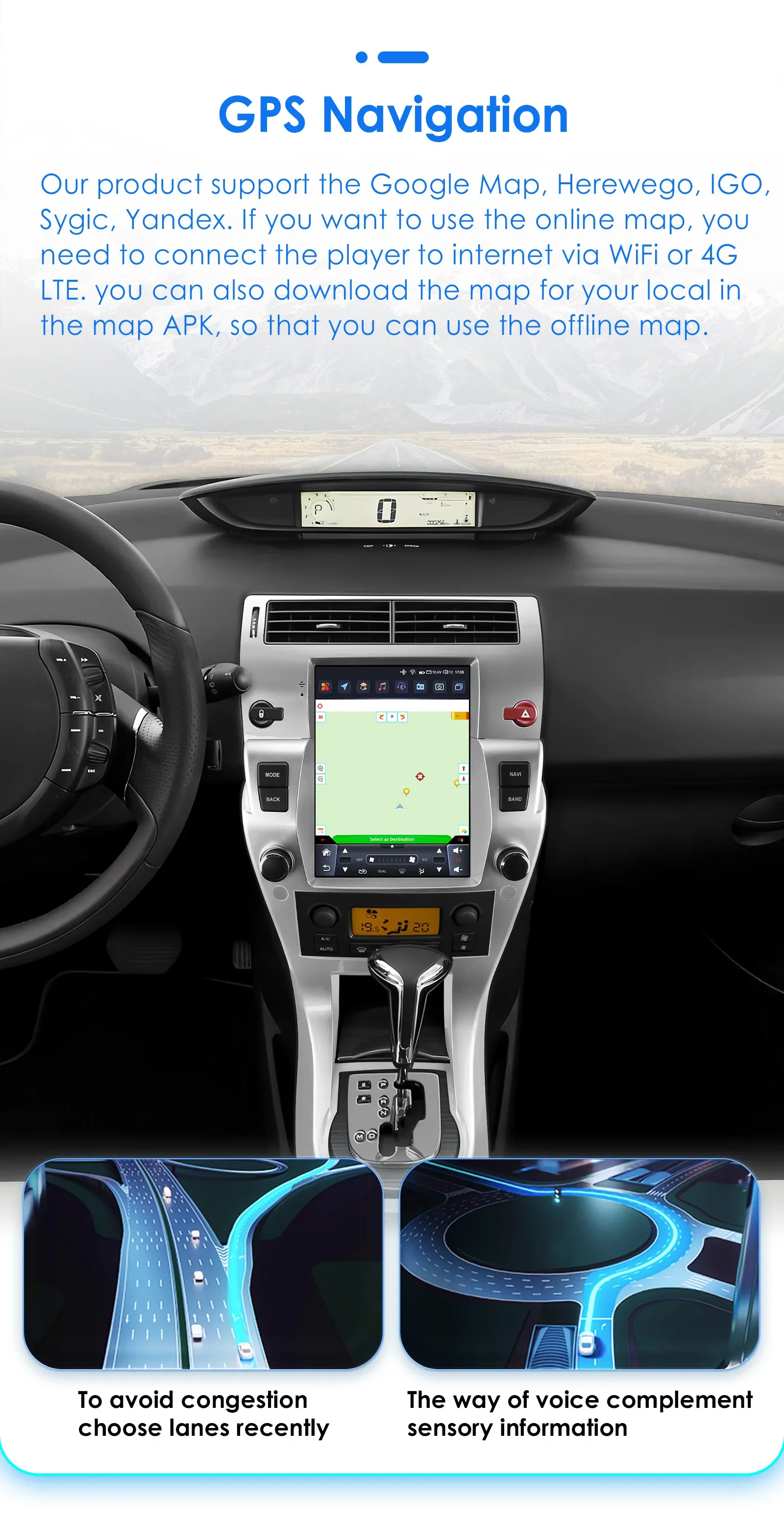 Navigazione GPS: supporta Google Maps online e offline, Navitel, Waze, Herewego Per evitare la congestione, scegli le corsie di recente, il modo in cui la voce completa le informazioni sensoriali.