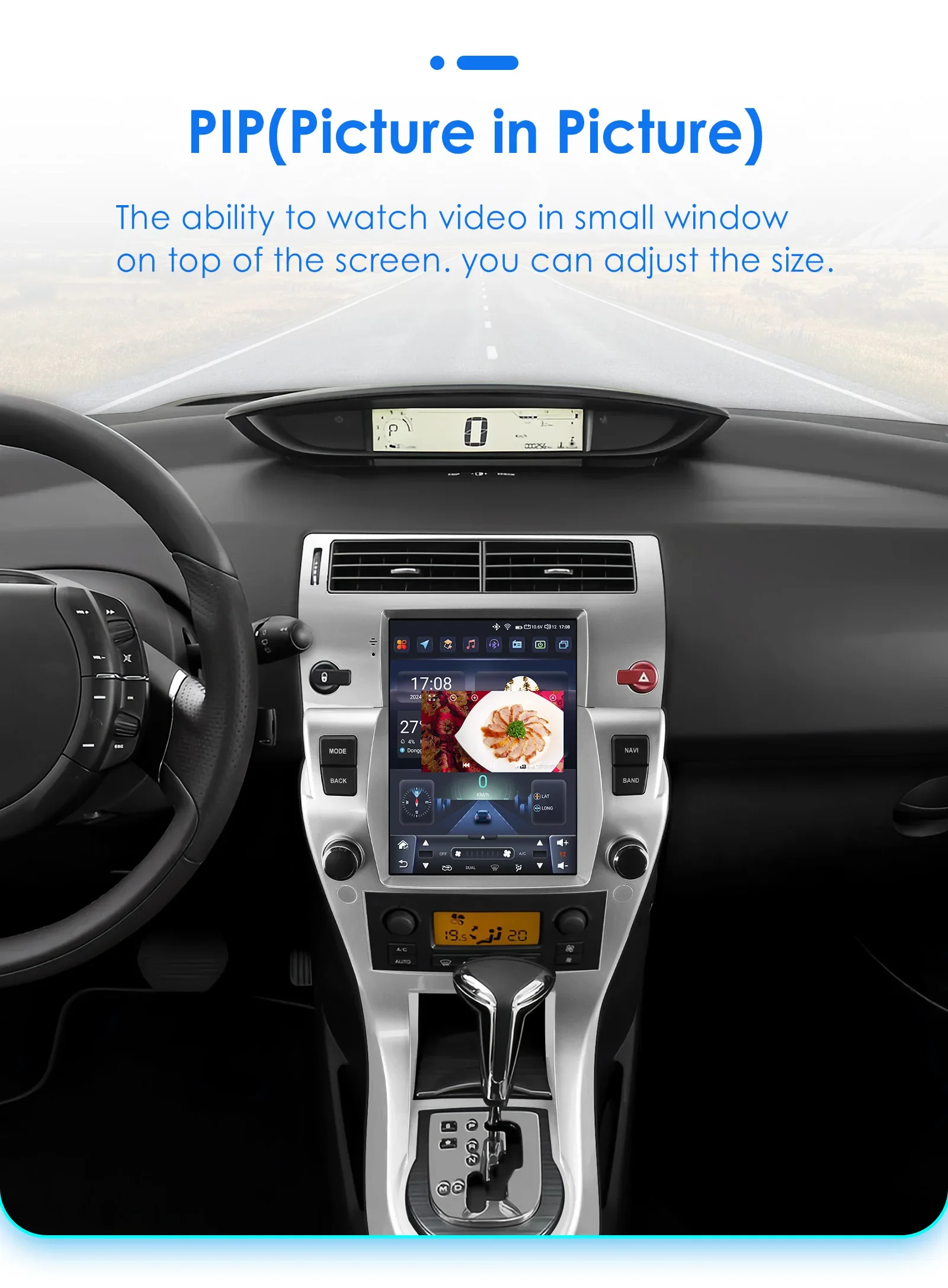 applicazione rapida, accensione e schermo diviso, visualizzazione di ora e data, riproduzione musicale, visualizzazione meteo, desktop e retro, controllo dell'aria condizionata,