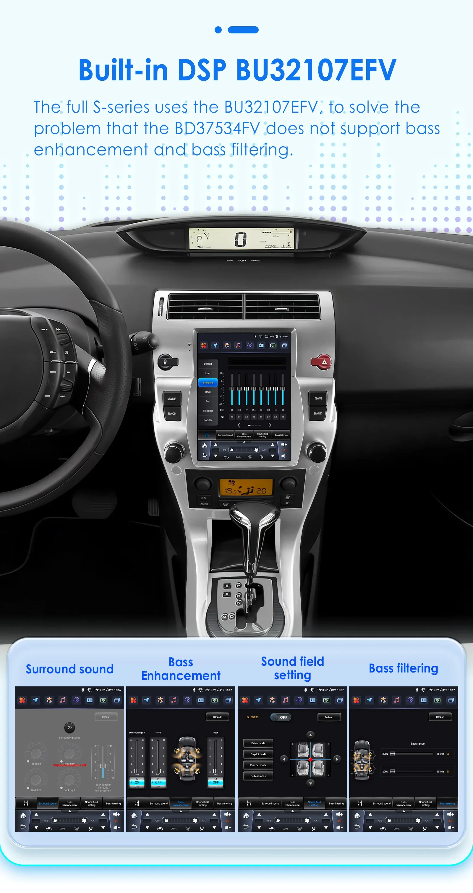 DSP integrato BU32107EFV: utilizziamo i chip DSP BU32107EFV e BD37534FV in diverse configurazioni di prodotto. Per le differenze specifiche, fare riferimento alla tabella delle configurazioni del prodotto.