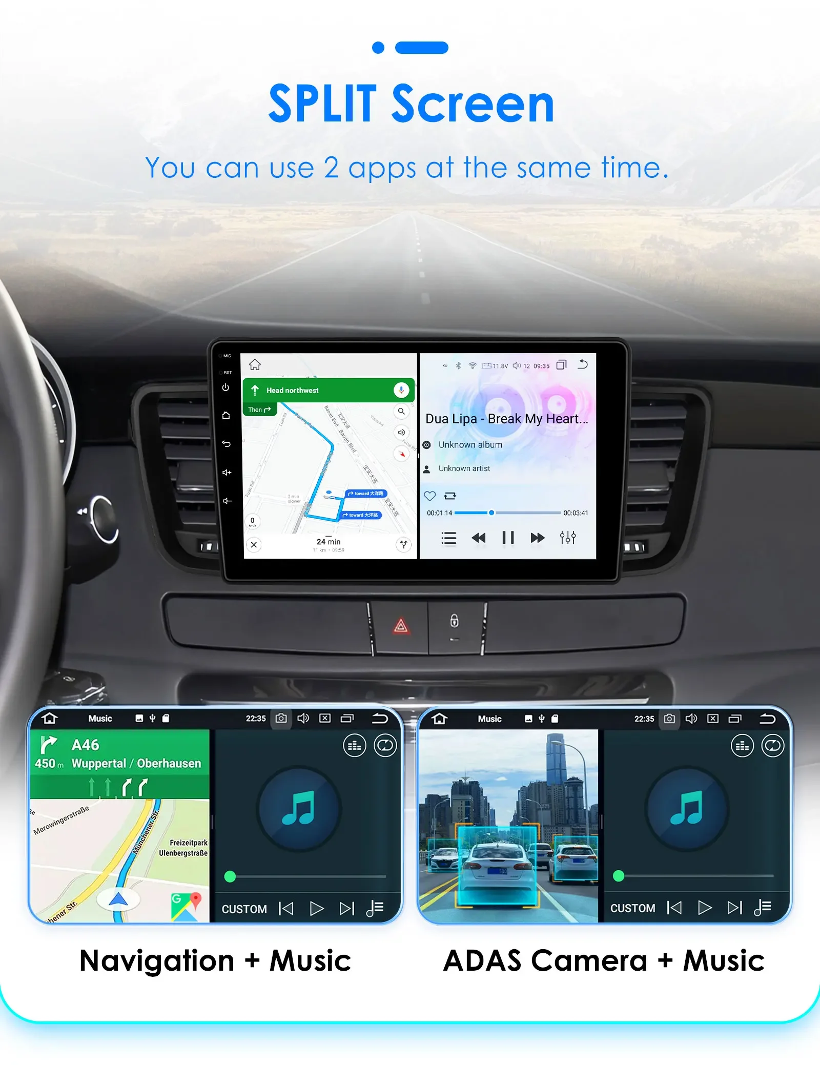 Schermo diviso: puoi usare 2 app contemporaneamente (come: Navigazione + Musica, Telecamera ADAS + Musica, ecc.)