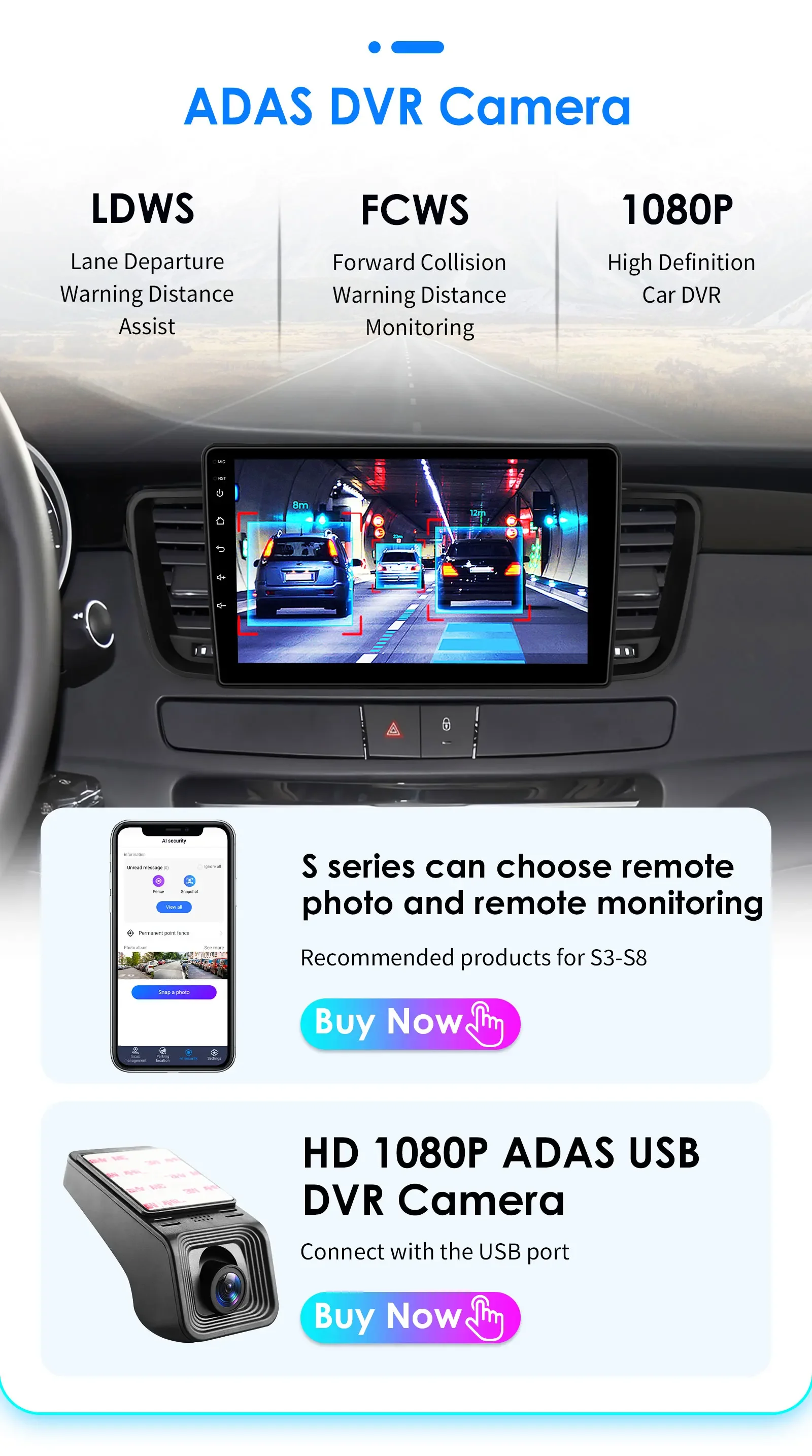 Telecamera DVR ADAS HD 1080P (da ordinare separatamente) -- collega alla porta USB: LDWS (Lane Departure Warning Distance), FCWS (Forward Collision Warning Distance), 1080P (High Definition Car DVR).