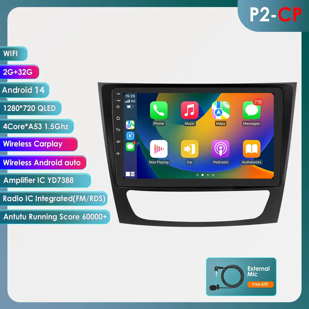Mercedes Benz E-Class W211 E200 E220 E300 E350 E240 E270 E280 CLS W219 55 C W463 CLK 9" Android 14 Carplay Android auto wireless wifi bt gps 4g AUTMPAP0