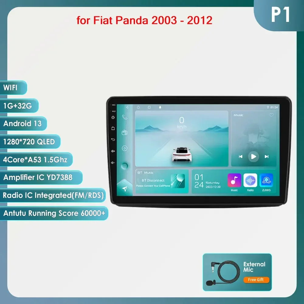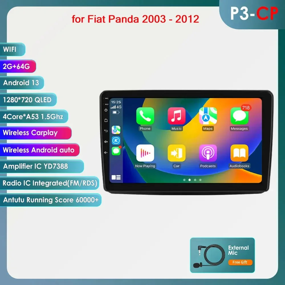 Fiat Panda 2003 - 2012 9" Android 14 Carplay Android auto wireless wifi bt gps 4g AUTMWUM9