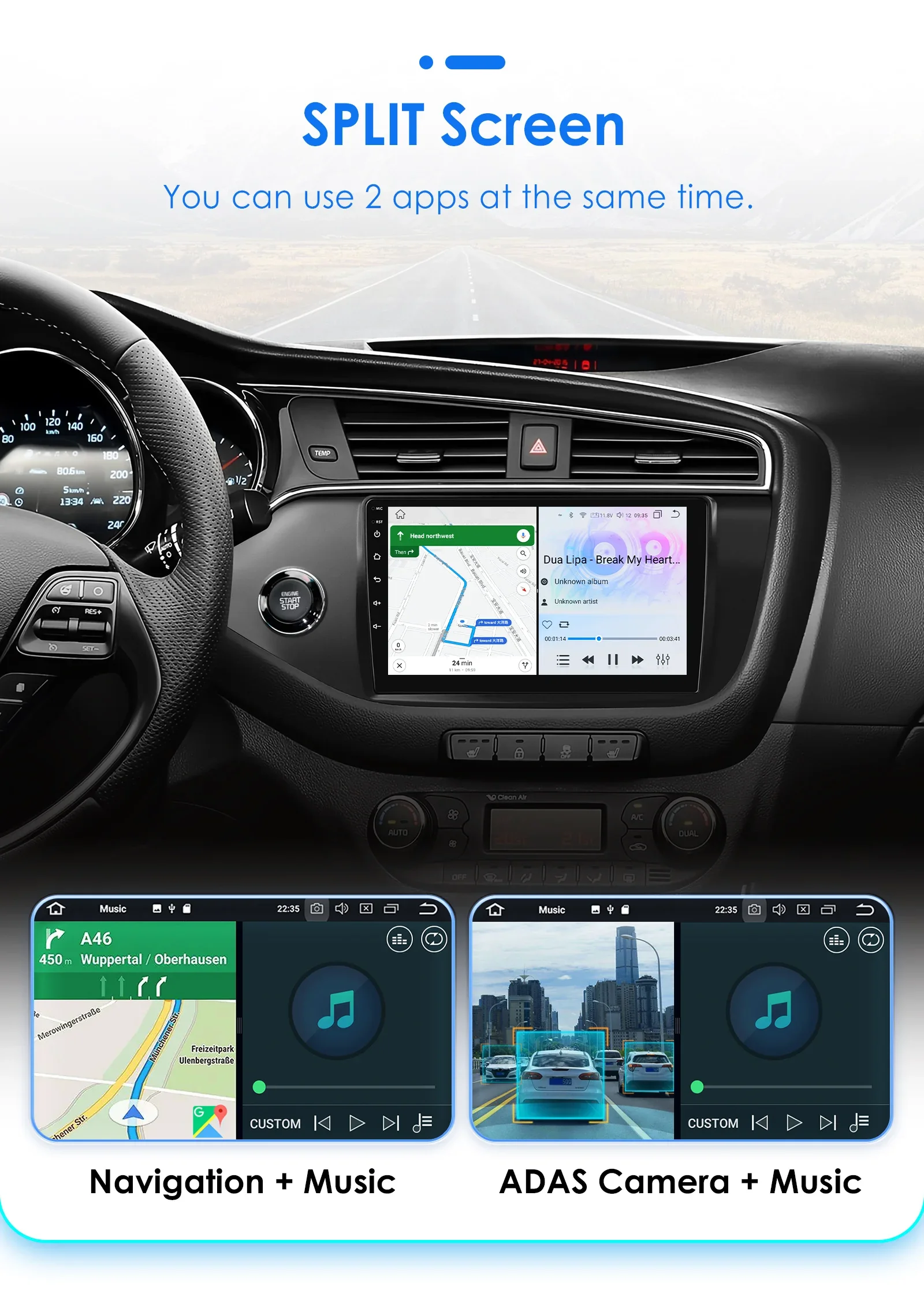 Schermo diviso: puoi usare 2 app contemporaneamente (come: navigazione + musica, telecamera ADAS + musica, ecc.)