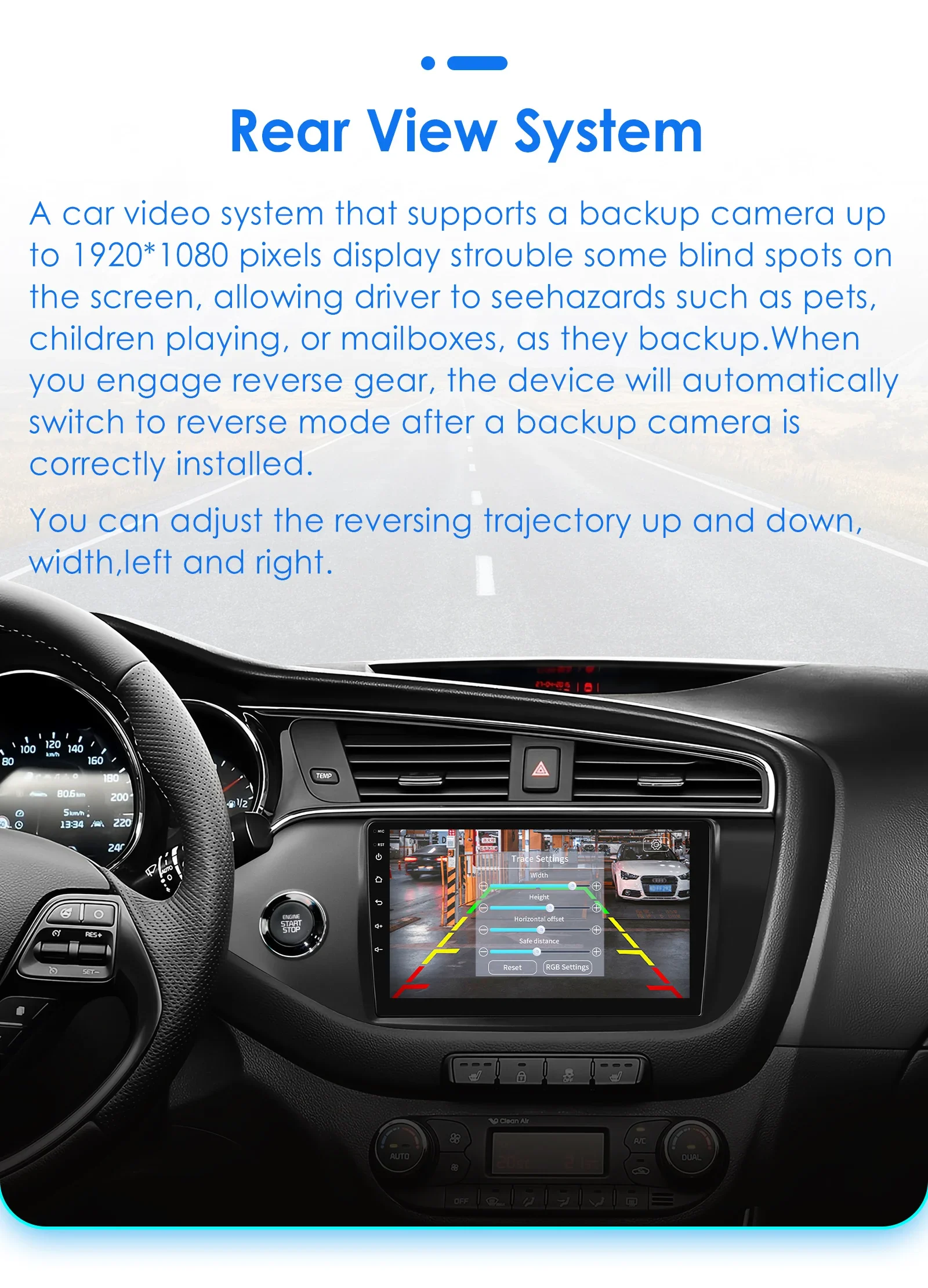 Sistema di visione posteriore (la telecamera per la visione posteriore deve essere ordinata separatamente): un sistema video per auto che supporta una telecamera per la retromarcia visualizza i punti ciechi problematici su un monitor, consentendo al conducente di vedere pericoli come animali domestici, bambini che giocano o cassette della posta mentre fa retromarcia.