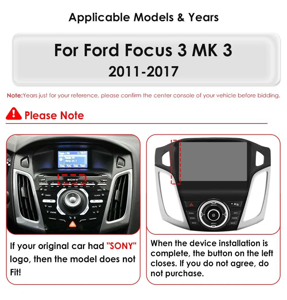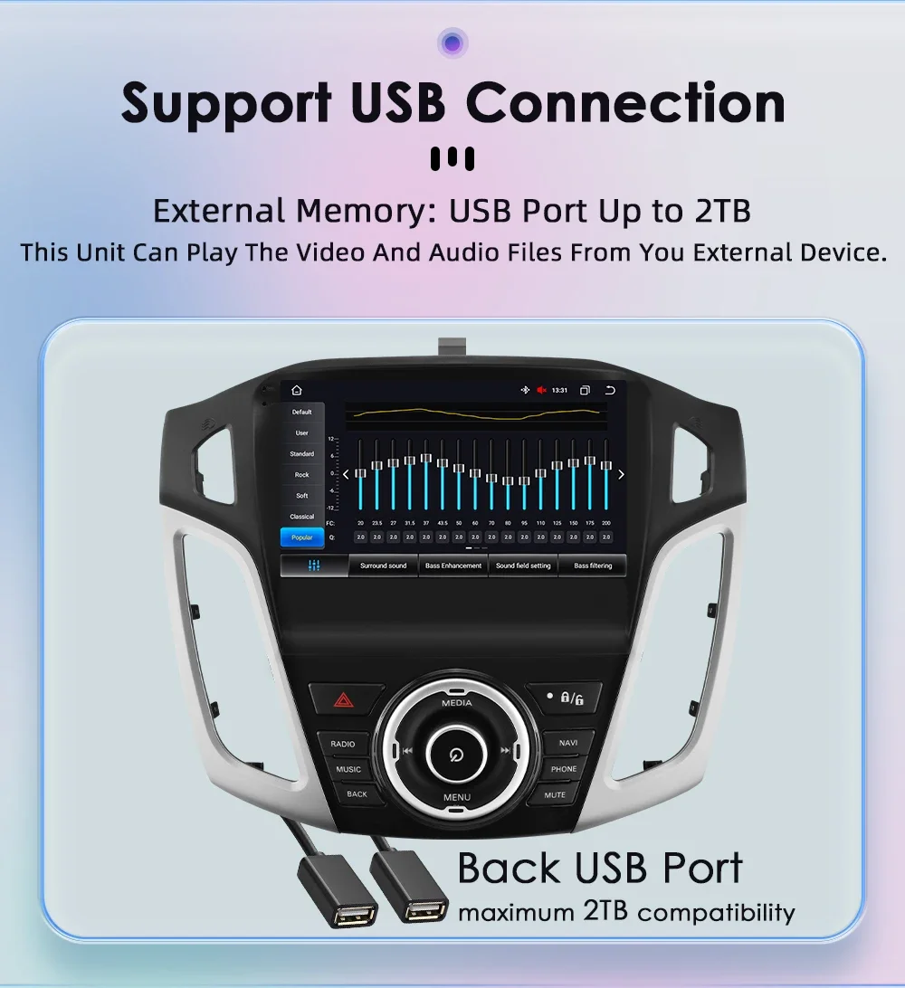 Ford Focus 3 Mk 3 2011 - 2019 9" Android 14 Carplay Android auto wireless wifi bt gps 4g AUTMSYSF