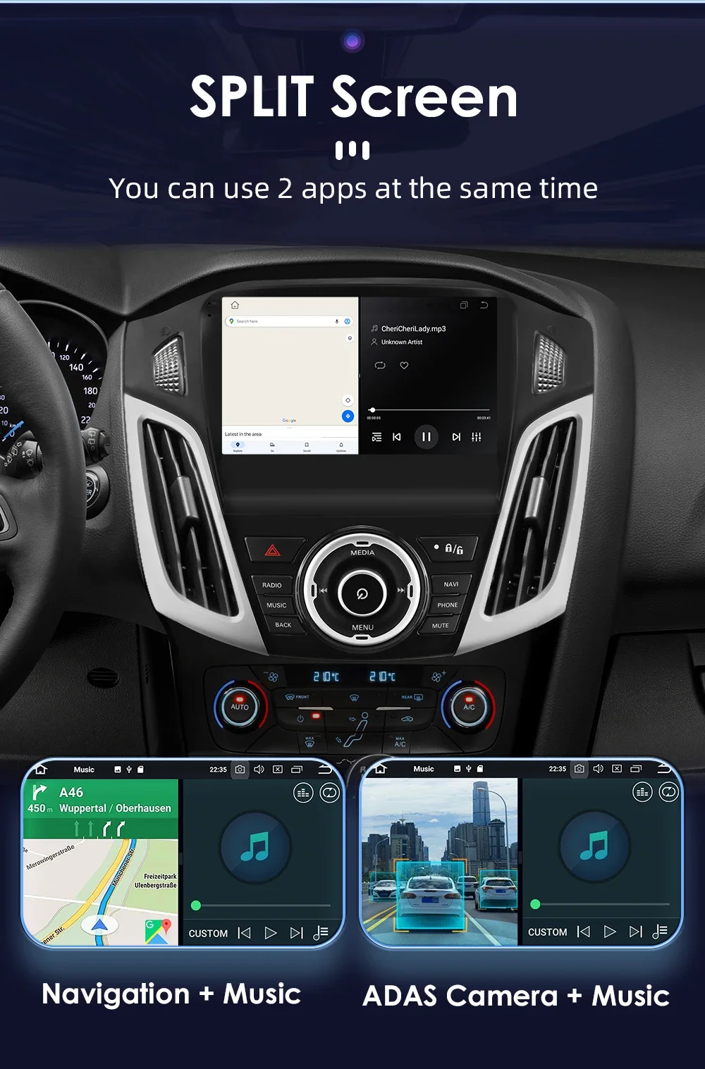 Supporta AV-OUT: AV OUT box (da ordinare separatamente) Schermo diviso: puoi usare 2 app contemporaneamente (come: Navigazione + Musica, Telecamera ADAS + Musica, ecc.)