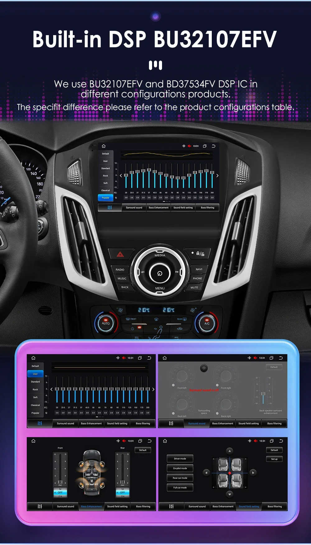 DSP BU32107EFV integrato: utilizziamo BU32107EFV e BD37534FV DSP IC in diverse configurazioni di prodotti. Per le differenze specifiche, fare riferimento alla tabella delle configurazioni del prodotto.