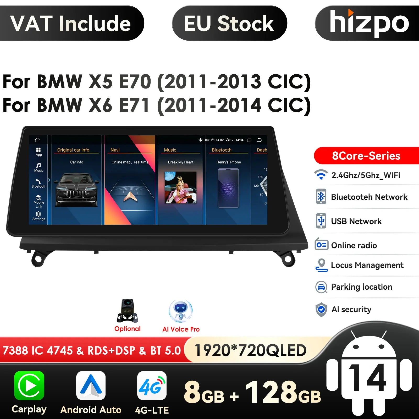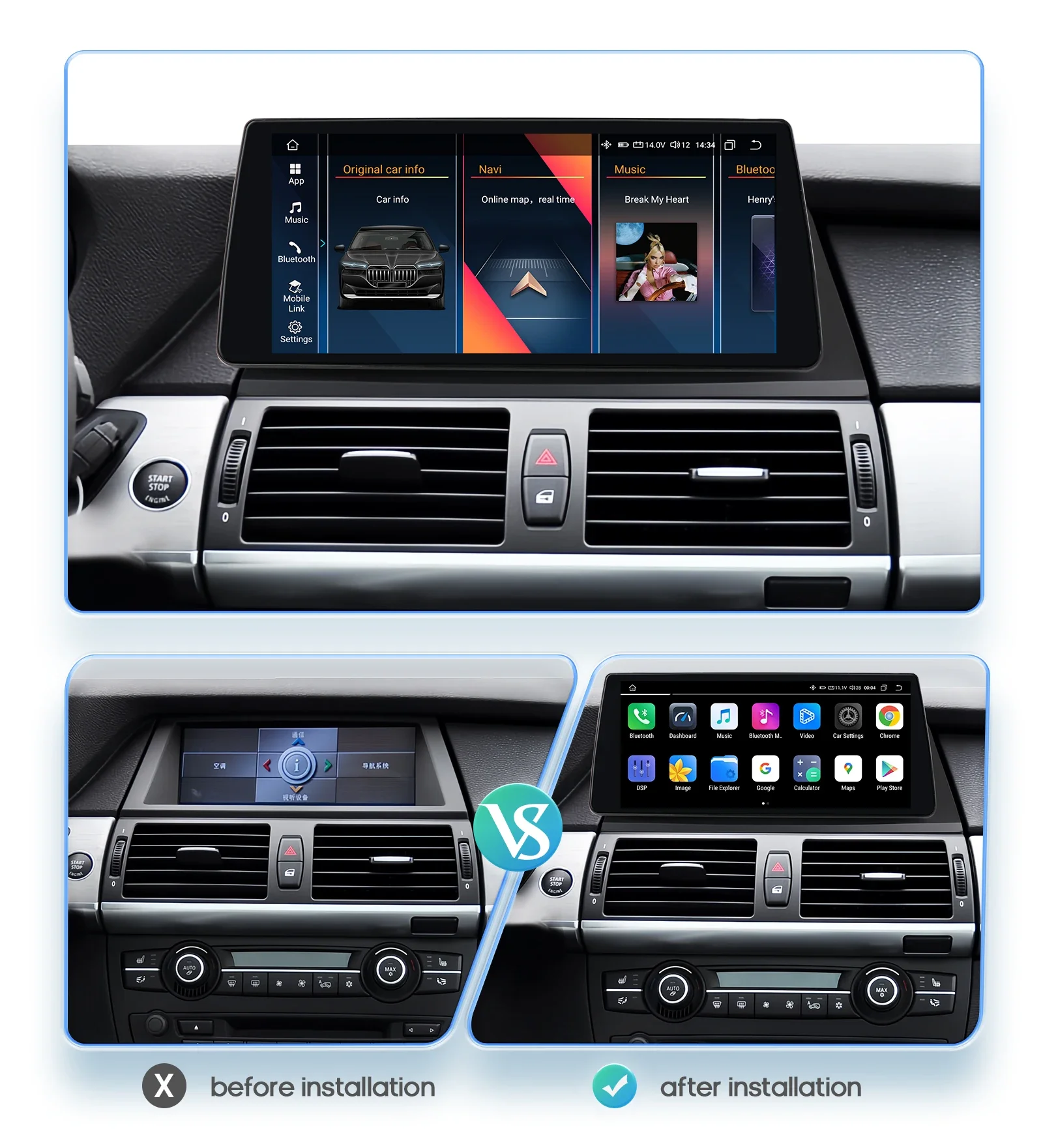 BMW X5 E70 X6 E71 CCC CIC 10,25" Android 14 Carplay Android auto wireless wifi bt gps 4g AUTM9L6U