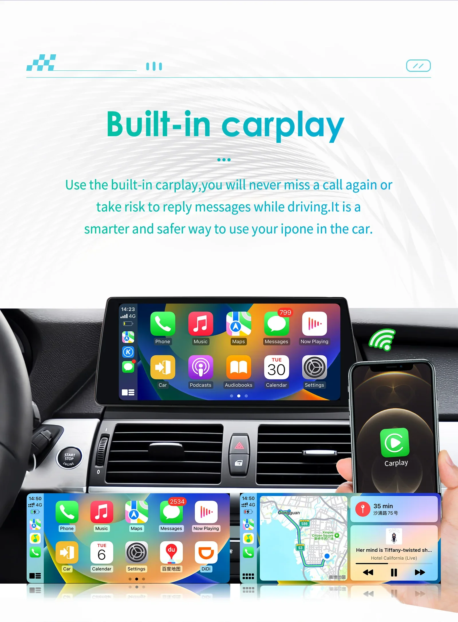 9. Built-in Carplay: Use the built-in carplay ,which you will never miss a calling again or take the risk to replay messages while driving. which is a smarter and safer way to use your iPhone in the car.