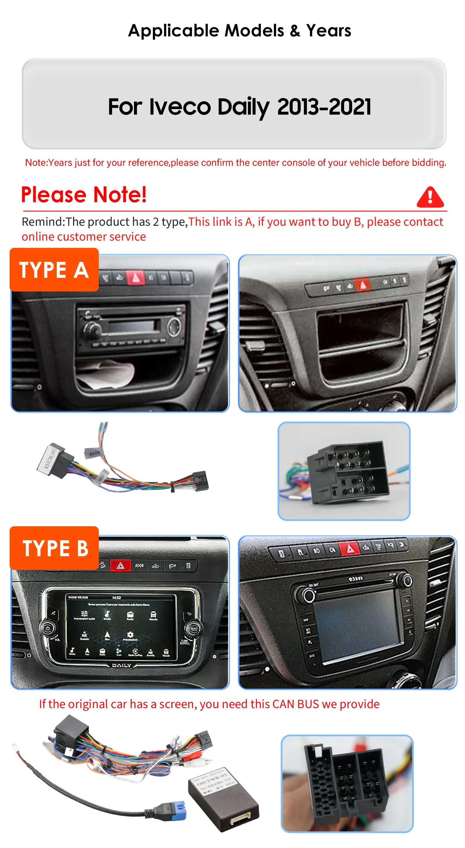 Iveco Daily 2013-2021 Multimedia Video Player GPS Carplay Android Auto wireless AUTM76EA