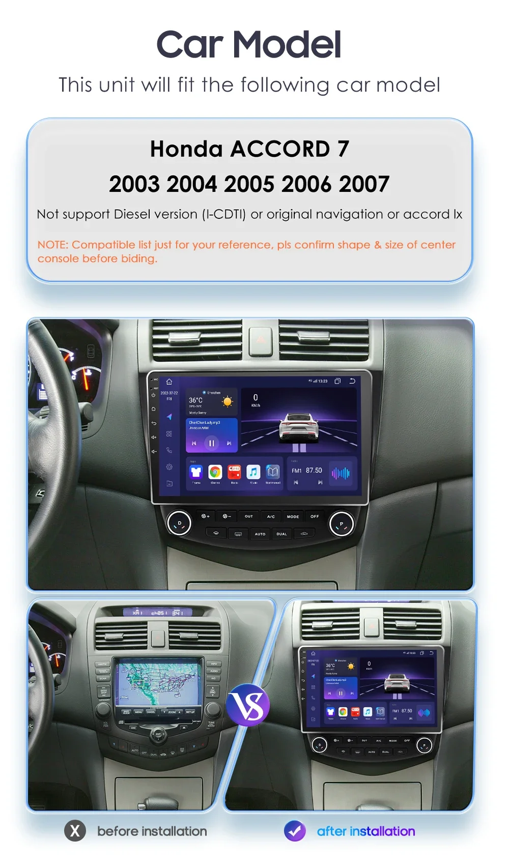 Honda Accord 7 2003 - 2007 9" Android 14 Carplay Android auto wireless wifi bt gps 4g AUTMDROH