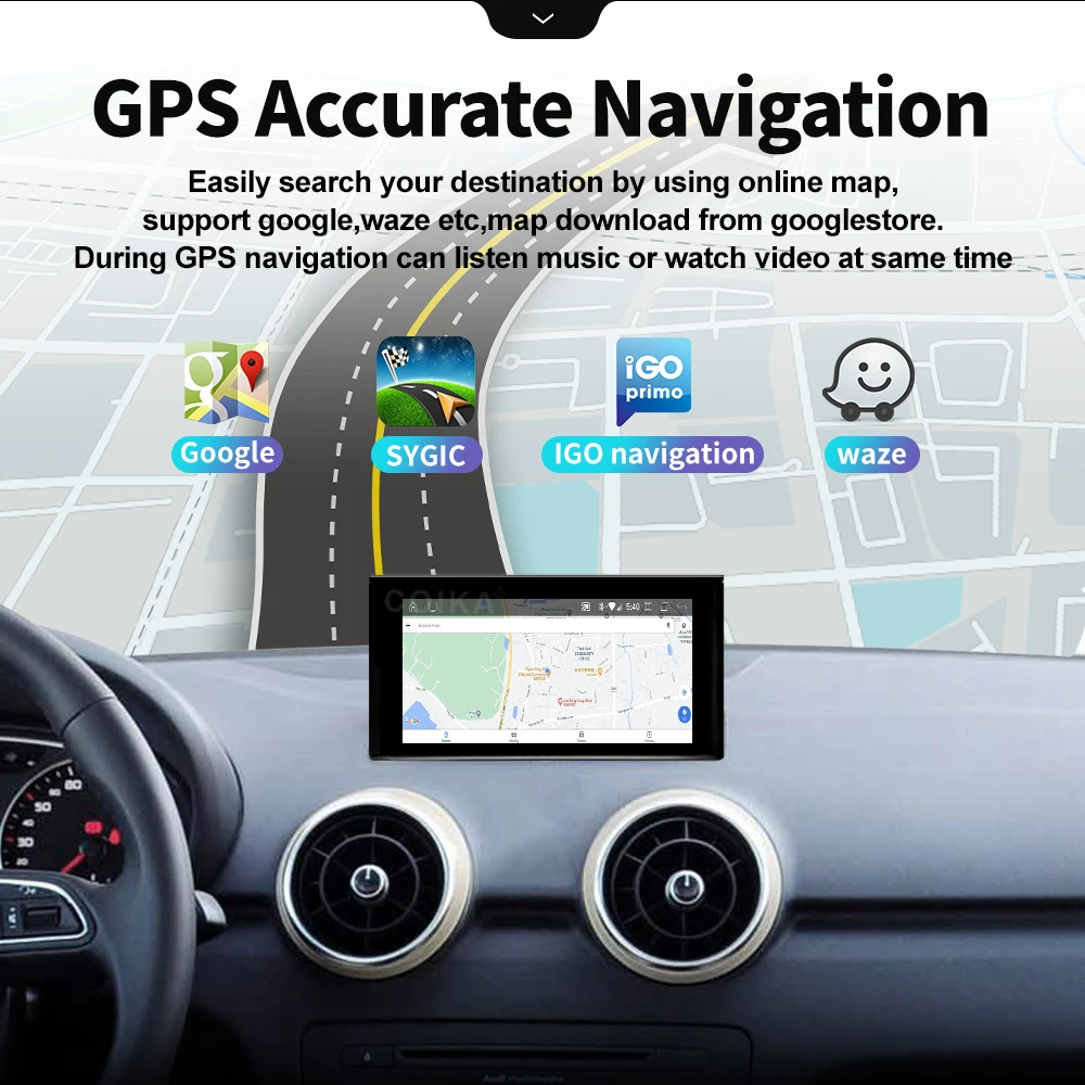 Monitor per auto con ricevitore GPS Navi Carplay wireless da 7" per Audi A3 2013-2018 Google BT Music Stereo