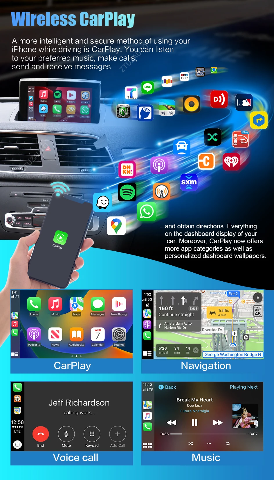 🚘 【Android Auto wireless/cablato 】Collega semplicemente il tuo telefono in modalità wireless per usufruire delle funzioni Android Auto. Supporta l'accesso alla navigazione, ai contatti del telefono, alla musica, ecc. Tramite Siri o Google Assistant per aiutarti a vivere un'esperienza di guida più intelligente e comoda mentre ti concentri sulla strada.