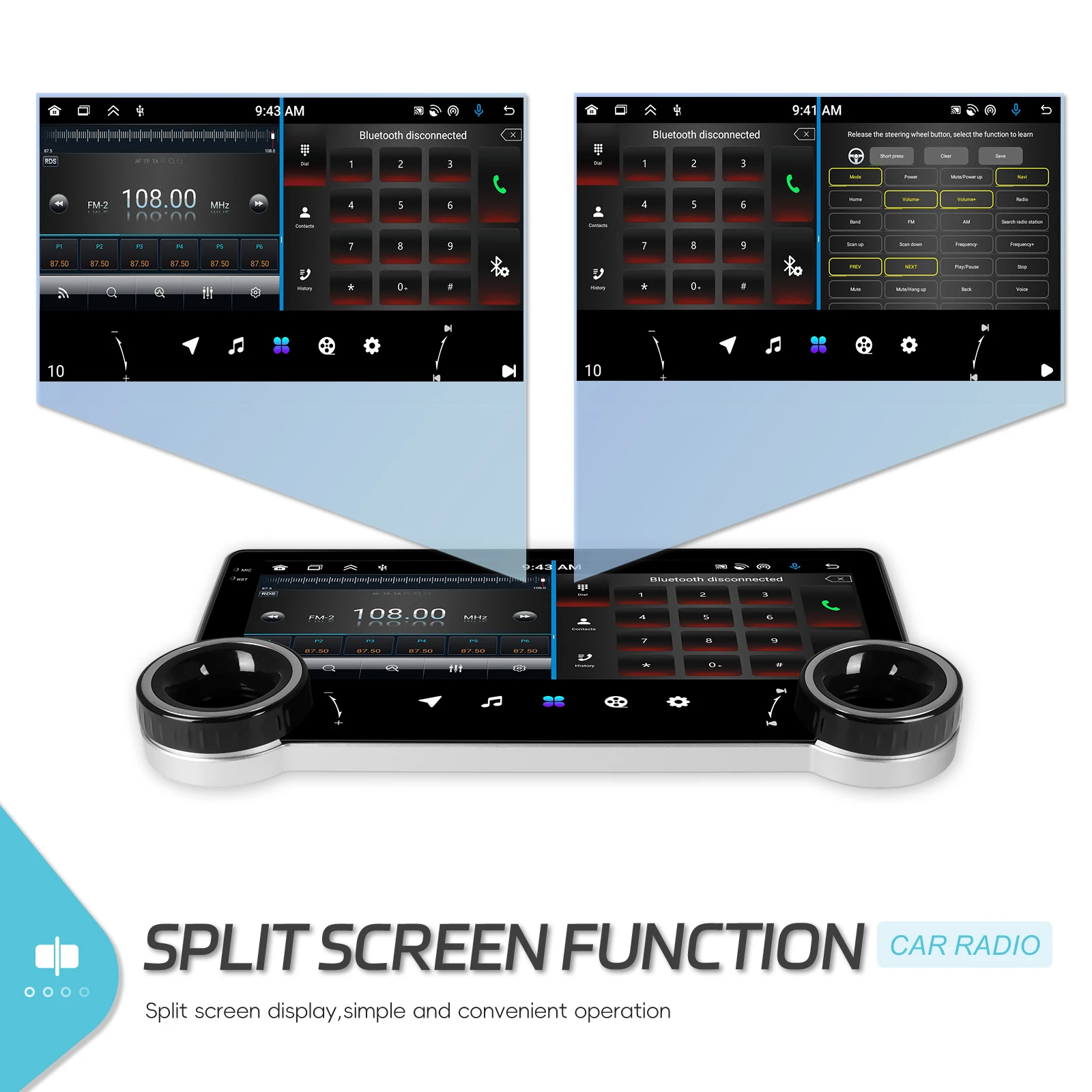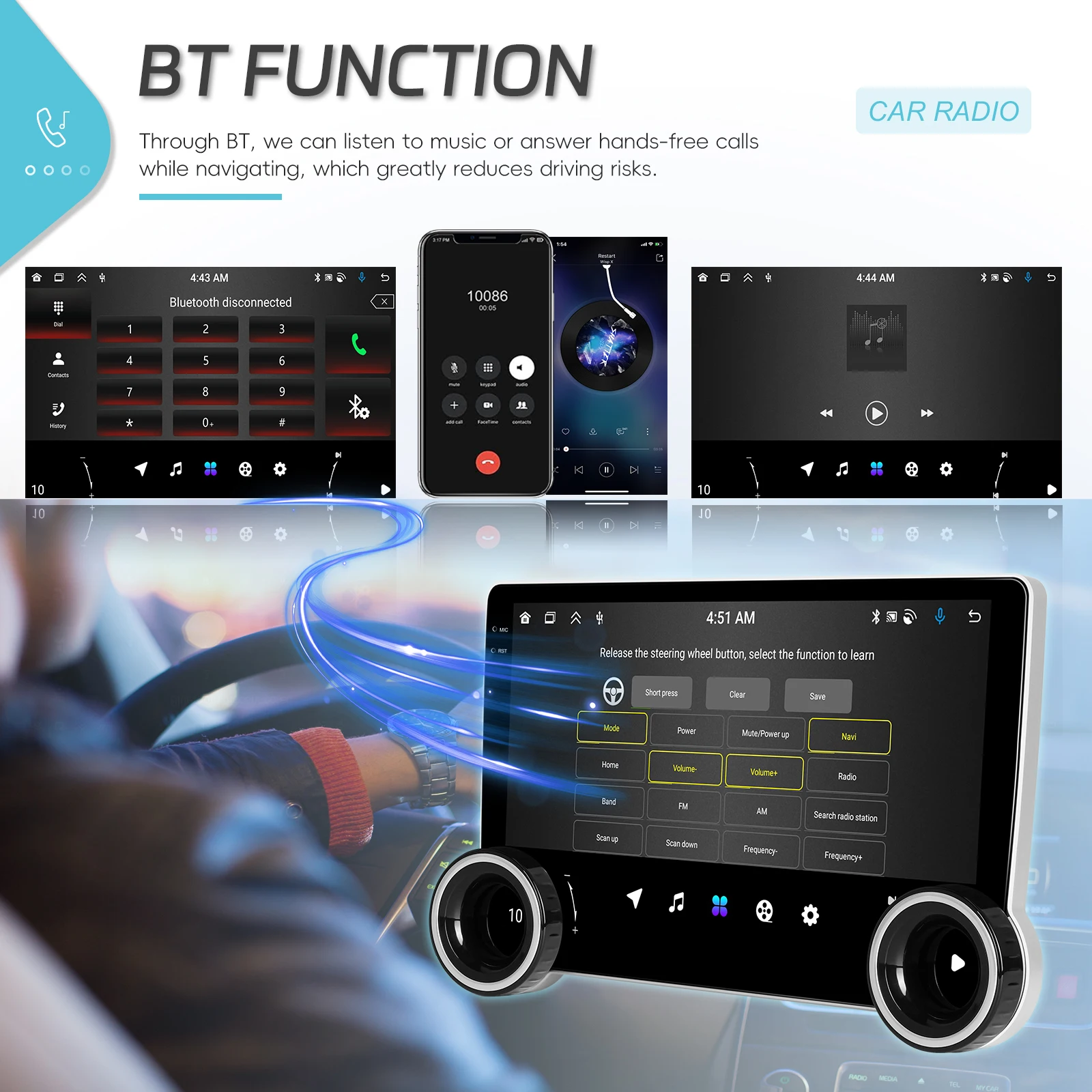 ● Wireless Carplay e Wireless Auto: usa il tuo iPhone o telefono Android in modalità wireless con il dispositivo e controlla le app del telefono. Puoi effettuare chiamate, inviare messaggi, riprodurre musica, navigare e altro ancora usando solo la voce o il tocco.