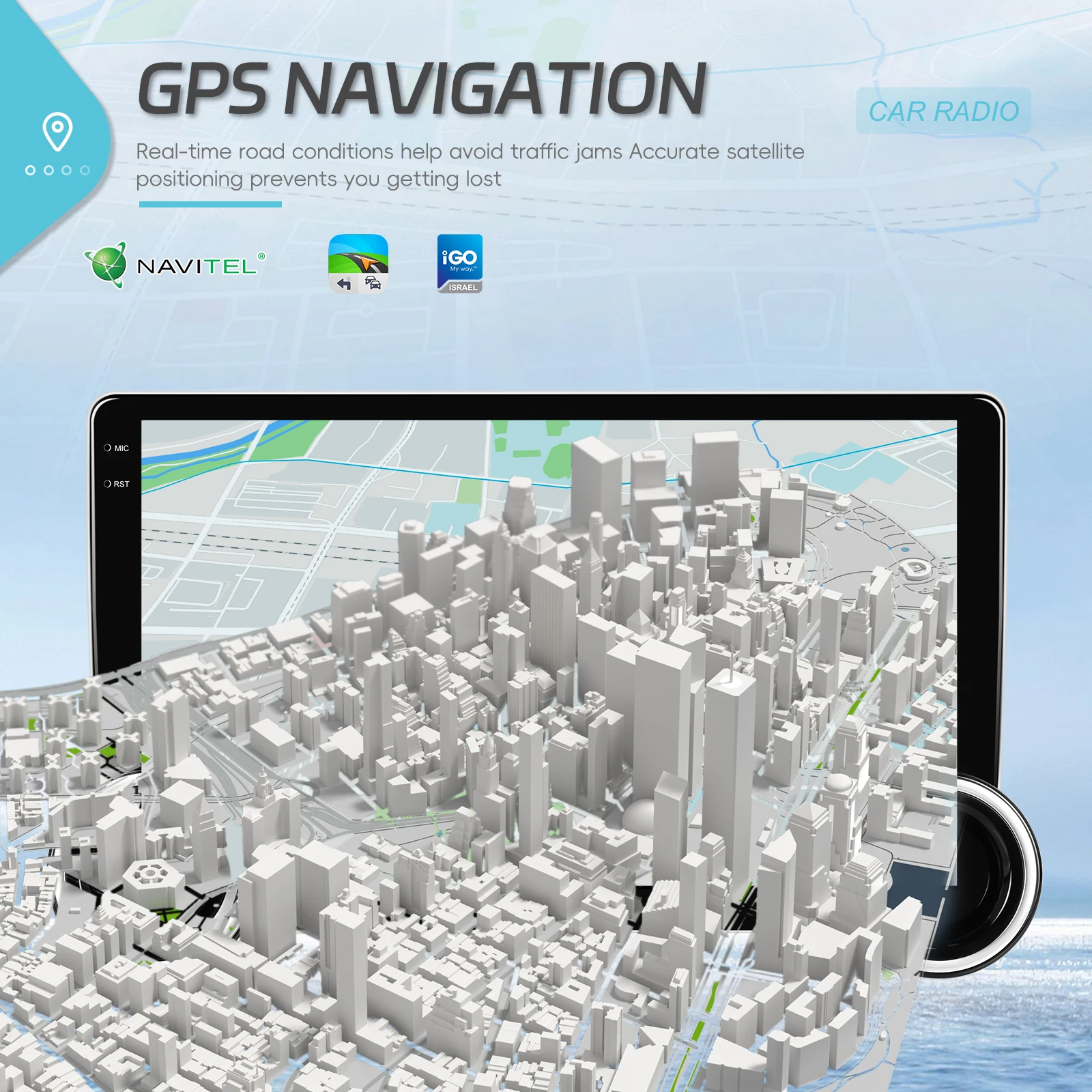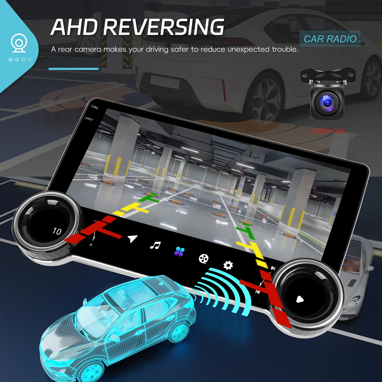 ●Supporta telecamera per la retromarcia/registratore di guida/MIC (acquisto opzionale): collega una telecamera per la retromarcia al dispositivo tramite la porta di ingresso video e visualizza la visuale posteriore della tua auto sullo schermo del dispositivo quando inserisci la retromarcia. Questo ti aiuta a parcheggiare in sicurezza ed evitare gli ostacoli. Puoi anche collegare un registratore di guida per registrare il tuo viaggio o un microfono per migliorare la qualità della voce durante le chiamate.