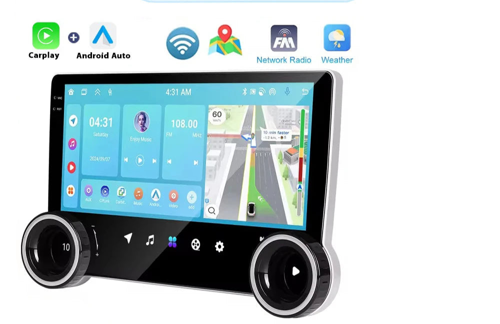 Autoradio 2Din 4+64G/6+128G Quadcore Lettore multimediale da 10,1'' con doppia manopola WIFI Carplay Android Auto Navigazione GPS AUTMUNICXZ