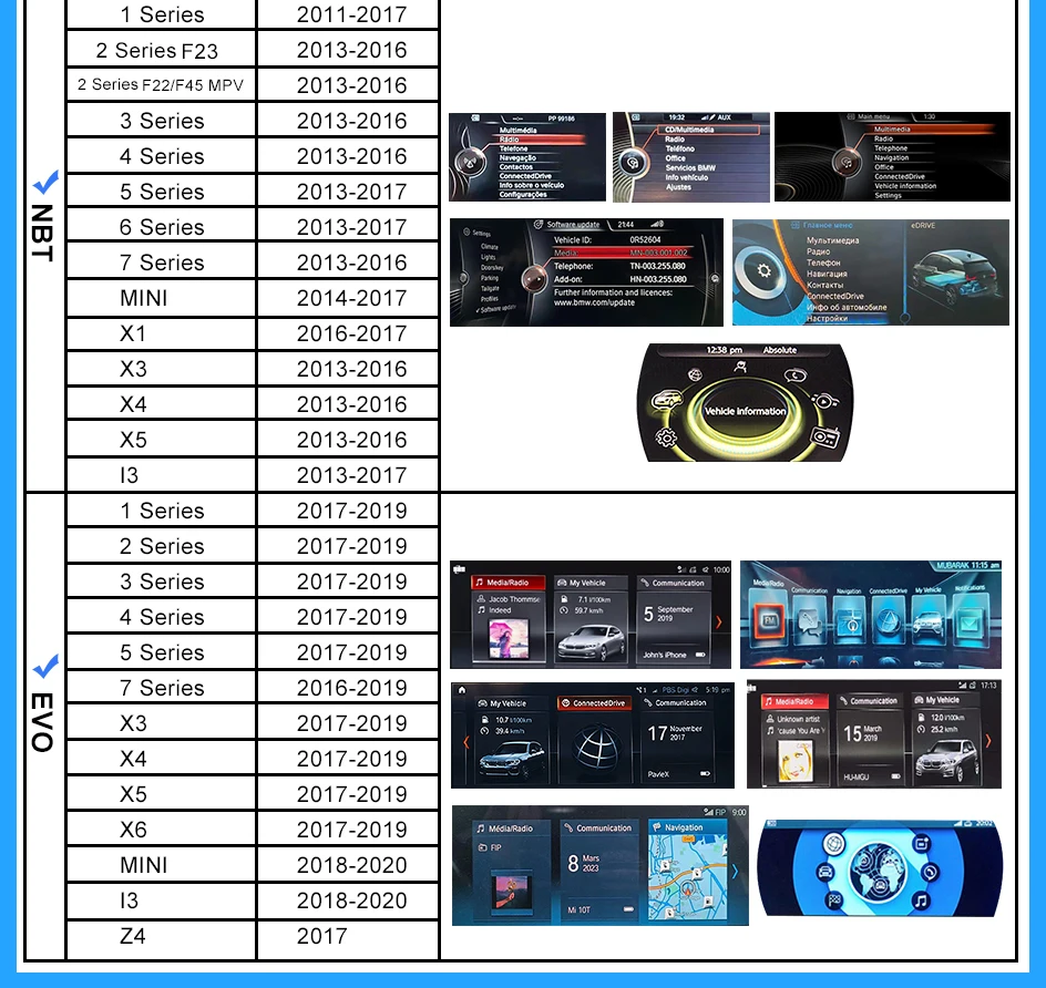 BMW 1 2 3 4 5 7 Series E70 F10 X1 X3 F25 F26 F48 MINI X4 X5 X6 F56 F15 Wireless CarPlay Android Auto AirPlay Mirror Link USB Camera AUTMBMWEFX
