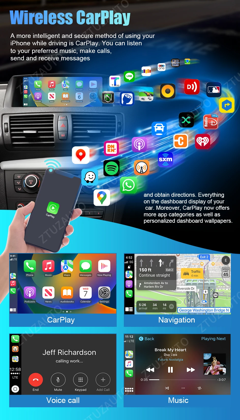 Sia che il tuo sistema NTG5.0/5.1/5.2 sia dotato di navigazione, modulo telefono o Bluetooth, che si tratti di Mappe Apple, Spotify, di effettuare/ricevere chiamate o di utilizzare Siri per rispondere a messaggi, il sistema supporta pienamente i sistemi Apple e le funzionalità del telefono ..