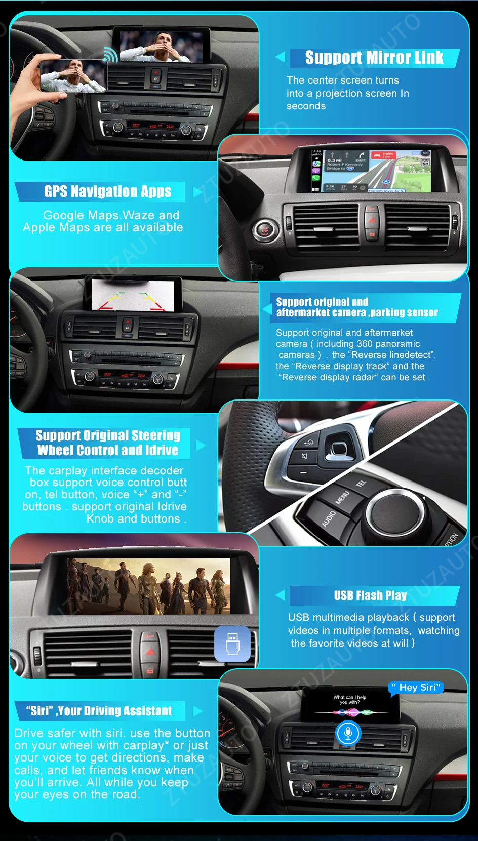 BMW 1 Series E81 E82 E87 E88 2008-2012 CIC Wireless CarPlay Android Auto Mirror Link AirPlay Navigatore AUTMBMW1E