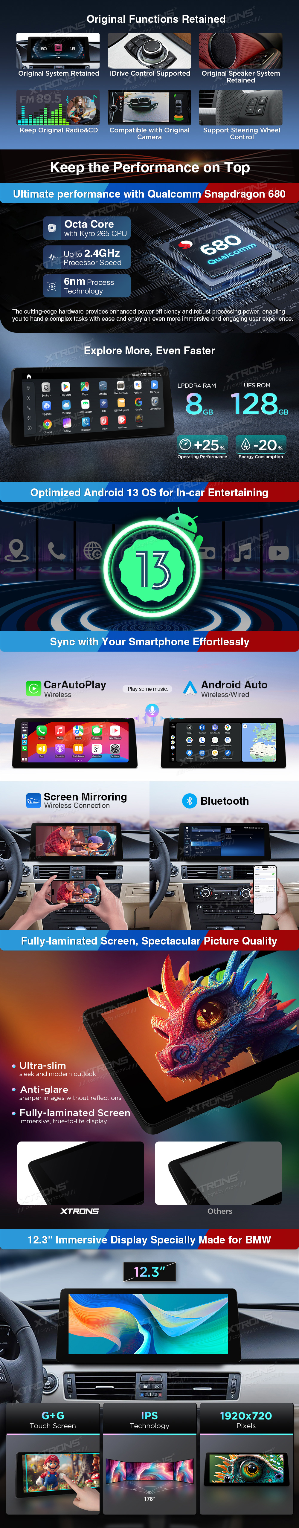 Lettore multimediale stereo per auto da 12,3 pollici Qualcomm Snapdragon 680 Android 14 8 GB + 128 GB per BMW Serie 3 E90/E91/E92/E93/M3 CIC/CCC
