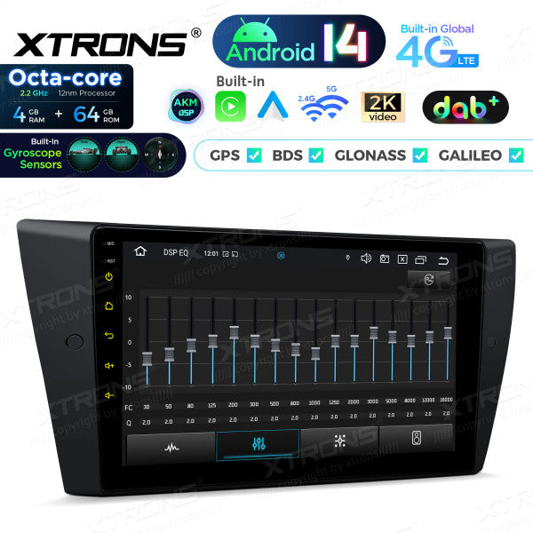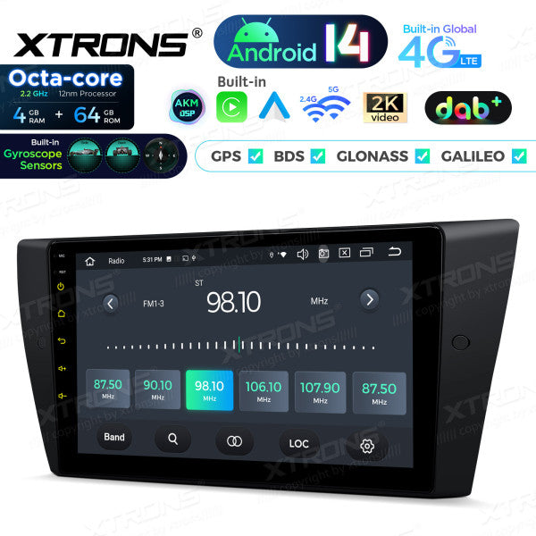 Autoradio multimediale Android 14 da 9 pollici 4+64 GB con DAB+ AKM DSP integrato, sensori giroscopici IPS globali 4G per BMW Serie 3